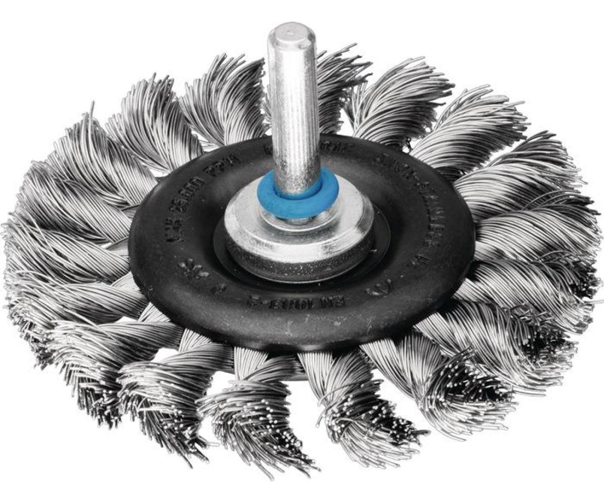 Weitere technische Eigenschaften · Antriebsarten: Biegwellenantrieb, Bohrmaschine, Geradschleifer · Anwendungsempfehlungen: Bitte beachten Sie die empfohlenen Drehzahlen., Für beste Leistung Werkzeugantrieb mit mindestens 500 Watt verwenden. · Bearbeitbare Werkstoffe: Aluminium, Bronze, Kobaltbasislegierungen, NE-Metall hart, Hochwarmfeste Werkstoffe, Nickelbasislegierungen (z. B. Inconell und Hasteloy), Superlegierungen auf Nickel oder Titanbasis, Weitere NE-Metalle, weiche Titanlegierungen (Zugfestigkeit 500 N/mm²), Edelstahl (INOX), Titan, Titanlegierungen · Bearbeitungsaufgaben: Reinigen, Entgraten, Entrosten, Entzundern, Anlauffarben entfernen, Oxydschichten entfernen, Entlacken, Wurzelnahtbearbeitung, Schweißnahtbearbeitung, Kehlnahtbearbeitung · Breite metrisch: 12mm · RPM, opt., bis: 16300min-1 · RPM, opt., von: 10000RPM · Sicherheitshinweise: Beim Einspannen der Bürste ist darauf zu achten, dass der Schaft möglichst weit in die Aufnahme eingespannt wird. Dies gilt insbesondere für den Einsatz im hohen Drehzahlbereich. Die Mindesteinspannlänge beträgt 10 mm. · Verpackungen: Industrieverpackung · Vorteile: Die Bürste ist entfettet und hinterlässt keine Ölrückstände auf dem Werkstück., Optimales Erreichen von schwer zugänglichen Stellen wie Nuten und Vertiefungen., Aggressiver Bürsteffekt durch hohe Steifigkeit der Drahtzöpfe., Sehr gute Korrosionsbeständigkeit. · Rundbürste RBG 7012/6 · INOX 0,35 D.76mm 6mm · Drahtstärke 0,35mm VA ·