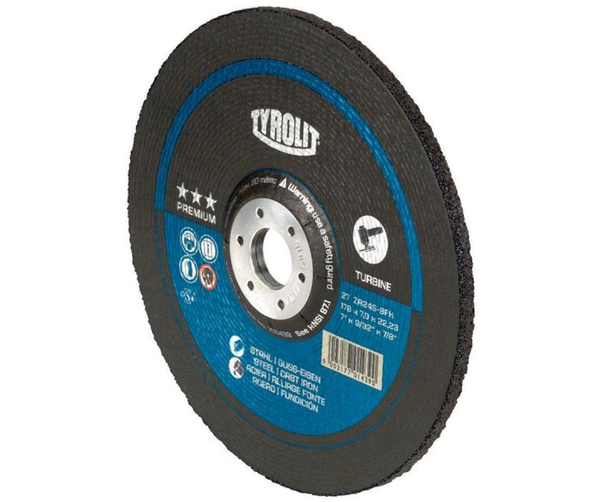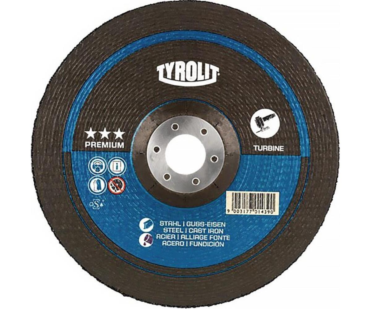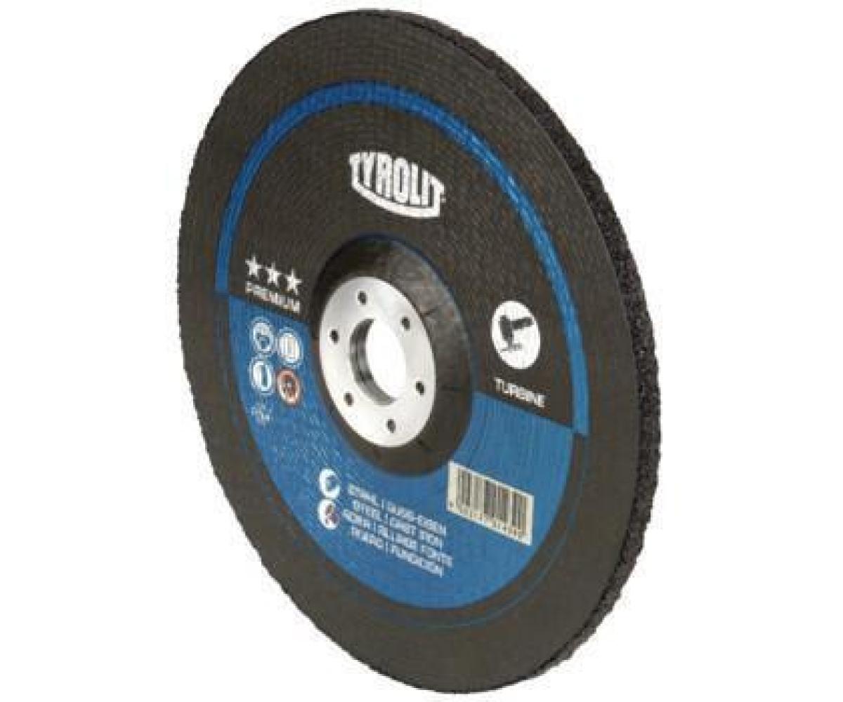 PREMIUM T-GRIND für hohe Anforderungen durch die Verwendung von Turbinen- und Lamellendruckluftschleifern entwickelt · die hohe Lebensdauer dieser Schruppscheibe sorgt für eine enorme Reduktion des Schleifmittelabfalls und ist damit umweltschonend · die gleichzeitig aggressive Abtragsleistung sorgt für ein angenehmes Arbeiten und Entlastung des Anwenders · für anspruchsvolle Anwendungen auf Stahl und Gusseisen · zur Verwendung auf Druckluft- und Hochfrequenzschleifern · Bohrung 22,23 mm Ø