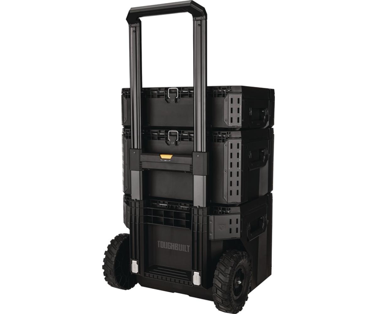 3-teilig · mit abnehmbarer, stapelbare Werkzeugboxen, 1 x mit Rollen · selbstausrichtend · automatische Verriegelung arretiert, wenn die Werkzeugkiste einrastet - 2 Verriegelungsmöglichkeiten an jeder Werkzeugkiste, passend für alle gängigen Schlösser · Schiebeschalter öffnet die Kiste oder zeigt an, wenn die Werkzeugkiste verriegelt und transportfähig ist · große, mittige Schnappöffnung erlaubt einen schnellen Zugriff auf deine Werkzeuge · hochwertige Konstruktion aus Polymer und pulverbeschichtete Stahlecken inkl. stahlverstärktem Deckel · abnehmbarer Teleskop-Handgriff und geländegängige Bereifung · passend zu Art.-Nr. 4000 819 243