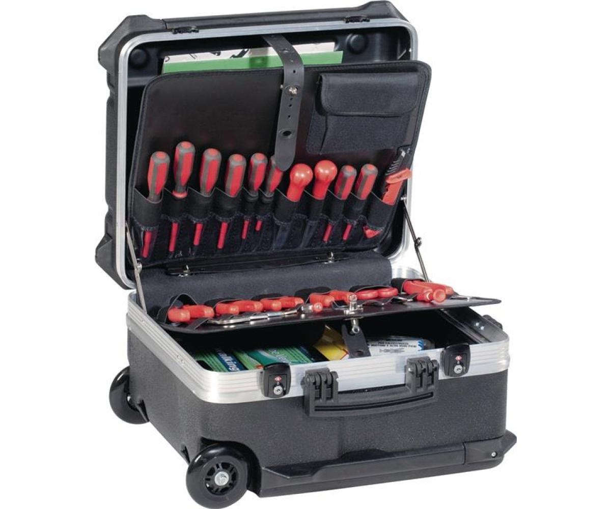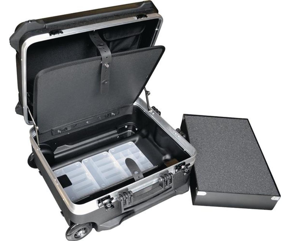 Schalenkoffer · Innen-B470xT390xH300mm · HDPE 64l TECWERK · Ausstattung: · 1 Bodenschale · 1 Bodenschalenabdeckung (Werkzeugtafel mit 6 Einsteckfächern und 12 Einstecklaschen) · 3 herausnehmbare Kleinteilemagazine (in der Bodenschale einliegend) · 1 Einsatzschale mit Rasterschaumeinlage in der Bodenschale (zum Beispiel für empfindliche Messgeräte) · 1 Werkzeugtafel doppelseitig bestückbar: Vorderseite 11 Einsteckfächer + Tasche für Kleinteile, Rückseite 13 Einsteckfächer + 12 Einstecklaschen · 2 Dokumentenfächer Besondere Produktvorteile: Dieser Koffer bietet mit seiner Höhe von 300 mm Stauraum auch für große und sperrige Werkzeuge Europäisches Qualitätsprodukt ·