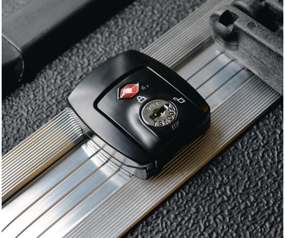 rollbar · Kofferschalen aus extrem widerstandsfähigem und schlagzähem HDPE-Kunststoff · stabiler Aluminiumrahmen · verstärkte Ecken · zwei Schlösser (abschließbar) · zwei kugelgelagerte Räder (Ø 120 mm) · Öffnungssystem mit Gasdruckfedern · 2-fach-Teleskopauszug, ca. 1100 mm lang · PP-Standfüße · stapelbar · mit TSA-Schloss · Tragfähigkeit 40 kg