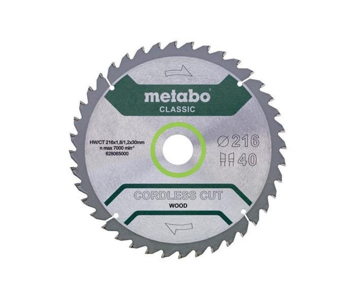 Weitere technische Eigenschaften · Durchmesser x Schnittbreite x Bohrung: 216mm · geeignet für: KS 18 LTX 216 / KGS 18 LTX 216 · Spanwinkel: 5Grad · Stammblattdicke: 1,2mm · Verpackung: Karton · Kreissägeblatt cordless · cut wood classic AD 216mm · Z.40 Bohr.30mm ·