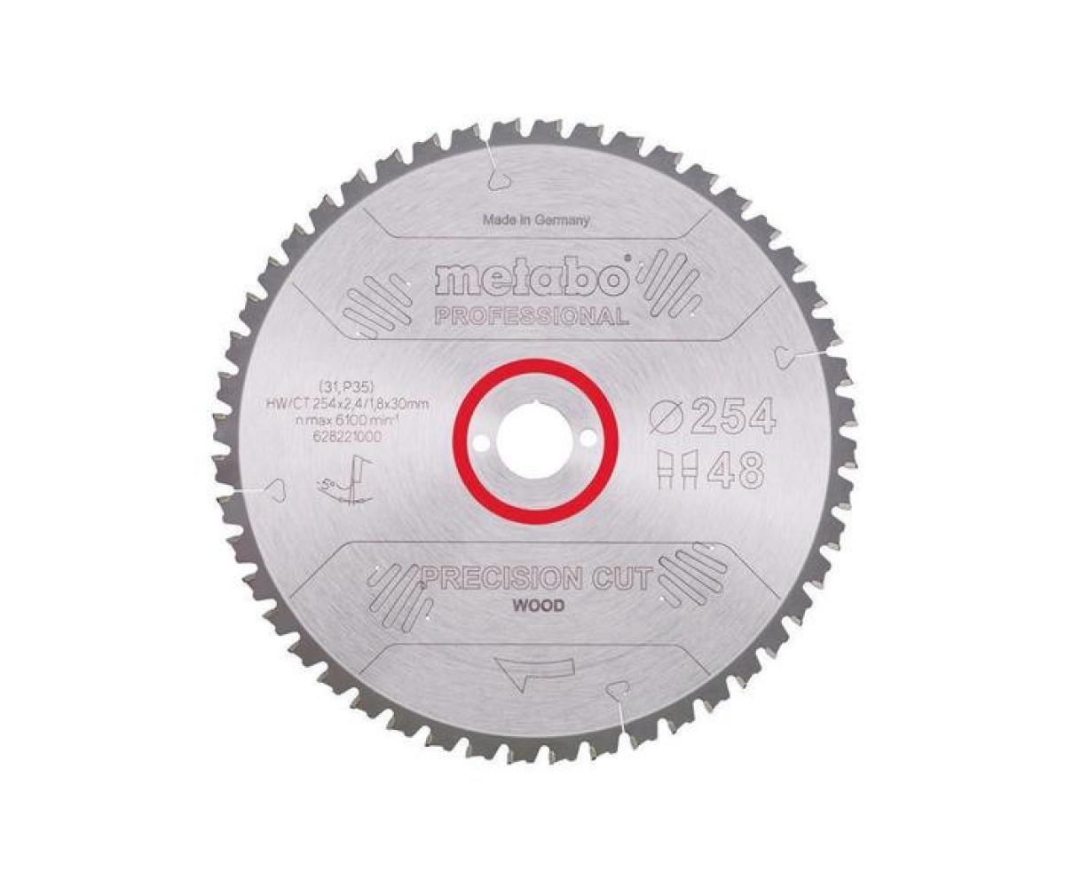 Weitere technische Eigenschaften · Durchmesser x Schnittbreite x Bohrung: 254mm · geeignet für: KS 254 Plus / KGS 254 M / KGS 254 Plus / KGS 254 I Plus · Spanwinkel: 5° neg. · Stammblattdicke: 1,8mm · Verpackung: Karton · Kreissägeblatt precision · cut wood professional D25 · 4xB2,4xBohrung30mm 48Z. W ·