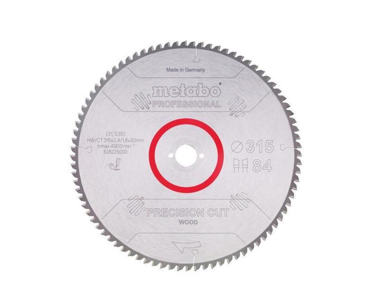 Weitere technische Eigenschaften · Durchmesser x Schnittbreite x Bohrung: 315mm · geeignet für: KGS 315 Plus · Spanwinkel: 5° neg. · Stammblattdicke: 1,8mm · Verpackung: Karton · Kreissägeblatt precision · cut wood professional D31 · 5xB2,4xBohrung30mm 84Z. W ·