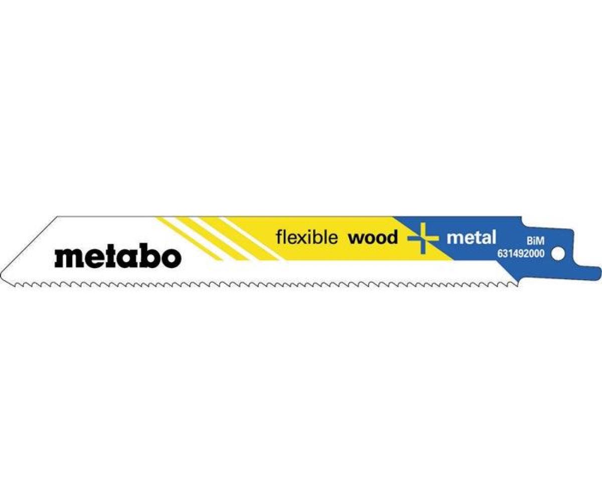 · Materialeignung: Holz/Holz mit Nägel/Metalleinlagen Ø 5-100 mm/Bleche/Rohre/Profile 3-10 mm/Kunststoffe 3-100 mm · Verkaufseinheit: 5 · Säbelsägeblätter flexible · L.150mm Dicke 0,9mm Zahn · teilung1,8-2,6mm BiMetall ·