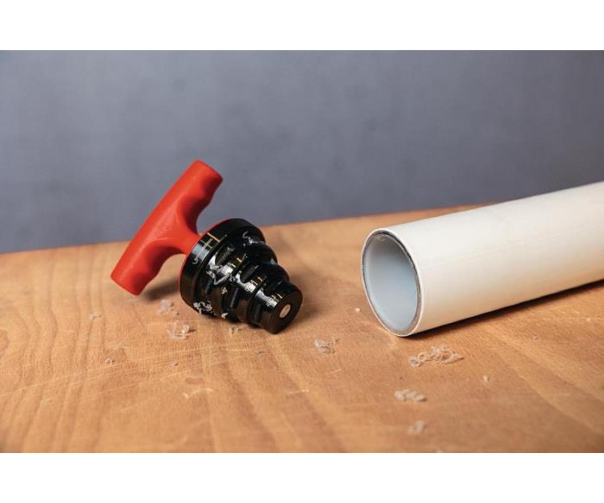 Der ROCALIBER L - ROTHENBERGERs All-In-One-Werkzeug zum Kalibrieren und Entgraten.Durch die integrierte Ratschenfunktion von ROTHENBERGER (RO-Ratchet) wird Ihnen ein komfortables und sicheres Bearbeiten in allen Lagen garantiert - ganz ohne Ermüdungserscheinungen. Egal ob horizontal · vertikal oder über Kopf: Der ROCALIBER L bietet ihnen bestmögliche Unterstützung in allen Arbeitslagen und zählt somit zu den außergewöhnlichen Kalibrierungswerkzeugen im Markt.Im Einsatzbereich von 40x3,5/50x4/63x4,5 mm deckt der ROCALIBER L dabei die wichtigsten Großdurchmesser für Kunststoffrohre ab. Dank des komfortablen T-Griffs liegt der ROCALIBER L besonders gut in der Hand und ermöglicht ein angenehmes Arbeiten.Die Bearbeitungsflächen des ROCALIBERs unterlagen einer speziellen Materialbehandlung und sind dadurch nicht nur äußerst präzise · sondern auch besonders robust. So ist höchste Präzision beim Arbeiten mit den ROCALIBER L gegeben · ohne Kompromisse bei der Haltbarkeit einzugehen. Mittels integrierte Ratschenfunktion von ROTHENBERGER (RO-Ratchet) wird ein komfortables und sicheres Bearbeiten von Kunststoffrohren in allen Lagen garantiertDeckt die wichtigsten Rohrdurchmesser im Einsatzbereich 40x3,5/50x4/63x4,5 mm abLiegt mittels T-Griff komfortabel in der HandDualfunktion: Kalibrieren und Entgraten (innen) in einem ToolSpezielle Materialbehandlung der Schnittkanten steigert die Verschleissfestigkeit des ROCALIBERs bei konstanter Präzision Der ROCALIBER L eignet sich mit seinem Arbeitsbereich von 40 - 63 mm ideal für ein präzises und arbeitseffizientes Kalibrieren und Entgraten.