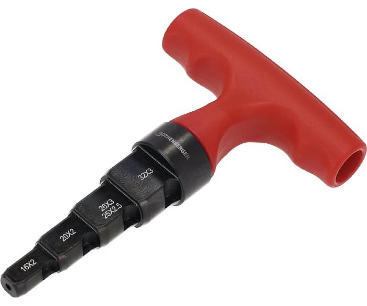 Der ROCALIBER S - ROTHENBERGERs All-In-One-Werkzeug zum Kalibrieren und Entgraten.Durch die integrierte Ratschenfunktion von ROTHENBERGER (RO-Ratchet) wird Ihnen ein komfortables und sicheres Bearbeiten in allen Lagen garantiert - ganz ohne Ermüdungserscheinungen. Egal ob horizontal · vertikal oder über Kopf: Der ROCALIBER S bietet ihnen bestmögliche Unterstützung in allen Arbeitslagen und zählt somit zu den außergewöhnlichen Kalibrierungswerkzeugen im Markt.Im Einsatzbereich von 16x2/20x2/26x3 (25x2,5)/32x3 mm deckt der ROCALIBER S dabei die die gängigsten Durchmesser für Kunststoffrohre ab. Dank des komfortablen T-Griffs liegt der ROCALIBER S besonders gut in der Hand und ermöglicht ein angenehmes Arbeiten.Die Bearbeitungsflächen des ROCALIBERs unterlagen einer speziellen Materialbehandlung und sind dadurch nicht nur äußerst präzise · sondern auch besonders robust. So ist höchste Präzision beim Arbeiten mit den ROCALIBER S gegeben · ohne Kompromisse bei der Haltbarkeit einzugehen. Mittels integrierte Ratschenfunktion von ROTHENBERGER (RO-Ratchet) wird ein komfortables und sicheres Bearbeiten von Kunststoffrohren in allen Lagen garantiertDeckt die wichtigsten Rohrdurchmesser im Einsatzbereich 16x2/20x2/26x3 (25x2,5)/32x3 mm abLiegt mittels T-Griff komfortabel in der HandDualfunktion: Kalibrieren und Entgraten (innen) in einem ToolSpezielle Materialbehandlung der Schnittkanten steigert die Verschleissfestigkeit des ROCALIBERs bei konstanter Präzision Der ROCALIBER S ist ein Kalibrierungswerkzeug mit einem Arbeitsbereich von 16 - 32 mm.