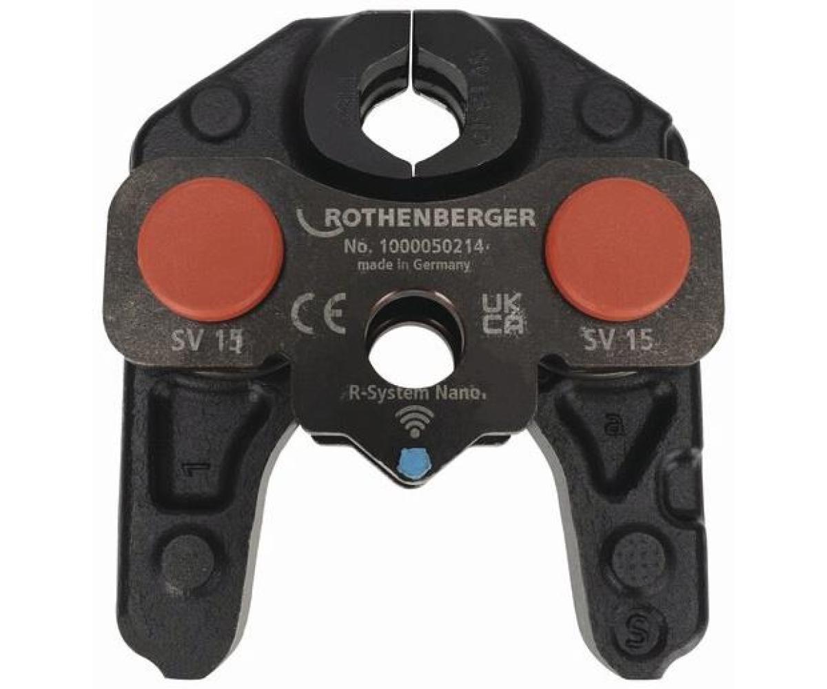 eignet sich ideal zum systemkonformen Verpressen von Fittings für metallische Rohrleitungssysteme. Die Pressbacke kommuniziert per integriertem RFID-Sensor zuverlässig und in Echtzeit mit der Pressmaschine. Dadurch wird die jeweilige NANO iJAW Pressbacke im Einsatz eindeutig identifiziert und die durchgeführten Pressvorgänge anschließend direkt auf der Backe abgespeichert, auch wenn diese auf unterschiedlichen NANO Pressmaschinen genutzt wurde. Anschließend können die Daten über die ROTHENBERGER App ausgelesen sowie verschickt und archiviert werden. Eine verlängerte Lebensdauer der Pressbacke sowie ein präzises Verpressen, wird durch das spezielle, partielle Laserhärteverfahrens namens DURA LAZR TEC erreicht. Daraus resultierend ergeben sich ein minimierter Verschleiß innerhalb der Presskontur als auch eine Verdoppelung der Presszyklen im Vergleich zum Vorgängermodell. Die Qualität der Pressbacke, über die gesamte Lebensdauer, wird durch den optimierten Korrosionsschutz perfektioniert. Mit der Integration einer 3-Bolzen-Gleichlaufmechanik wird das Öffnen der Pressbacke im täglichen Einsatz zu einer Leichtigkeit (One-Finger-Operation).