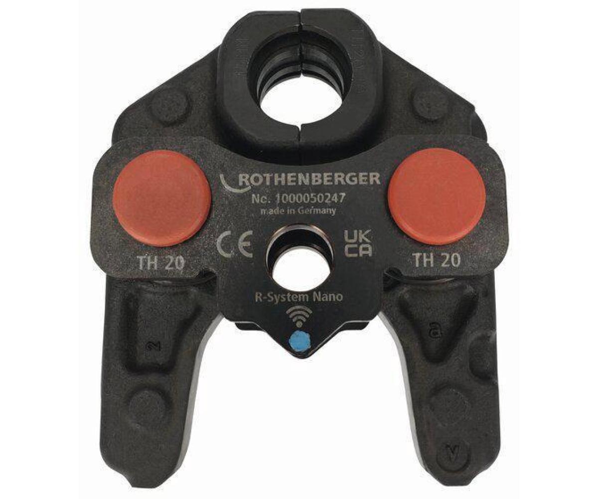 eignet sich ideal zum systemkonformen Verpressen von Fittings für metallische Rohrleitungssysteme. Die Pressbacke kommuniziert per integriertem RFID-Sensor zuverlässig und in Echtzeit mit der Pressmaschine. Dadurch wird die jeweilige NANO iJAW Pressbacke im Einsatz eindeutig identifiziert und die durchgeführten Pressvorgänge anschließend direkt auf der Backe abgespeichert, auch wenn diese auf unterschiedlichen NANO Pressmaschinen genutzt wurde. Anschließend können die Daten über die ROTHENBERGER App ausgelesen sowie verschickt und archiviert werden. Eine verlängerte Lebensdauer der Pressbacke sowie ein präzises Verpressen, wird durch das spezielle, partielle Laserhärteverfahrens namens DURA LAZR TEC erreicht. Daraus resultierend ergeben sich ein minimierter Verschleiß innerhalb der Presskontur als auch eine Verdoppelung der Presszyklen im Vergleich zum Vorgängermodell. Die Qualität der Pressbacke, über die gesamte Lebensdauer, wird durch den optimierten Korrosionsschutz perfektioniert. Mit der Integration einer 3-Bolzen-Gleichlaufmechanik wird das Öffnen der Pressbacke im täglichen Einsatz zu einer Leichtigkeit (One-Finger-Operation).