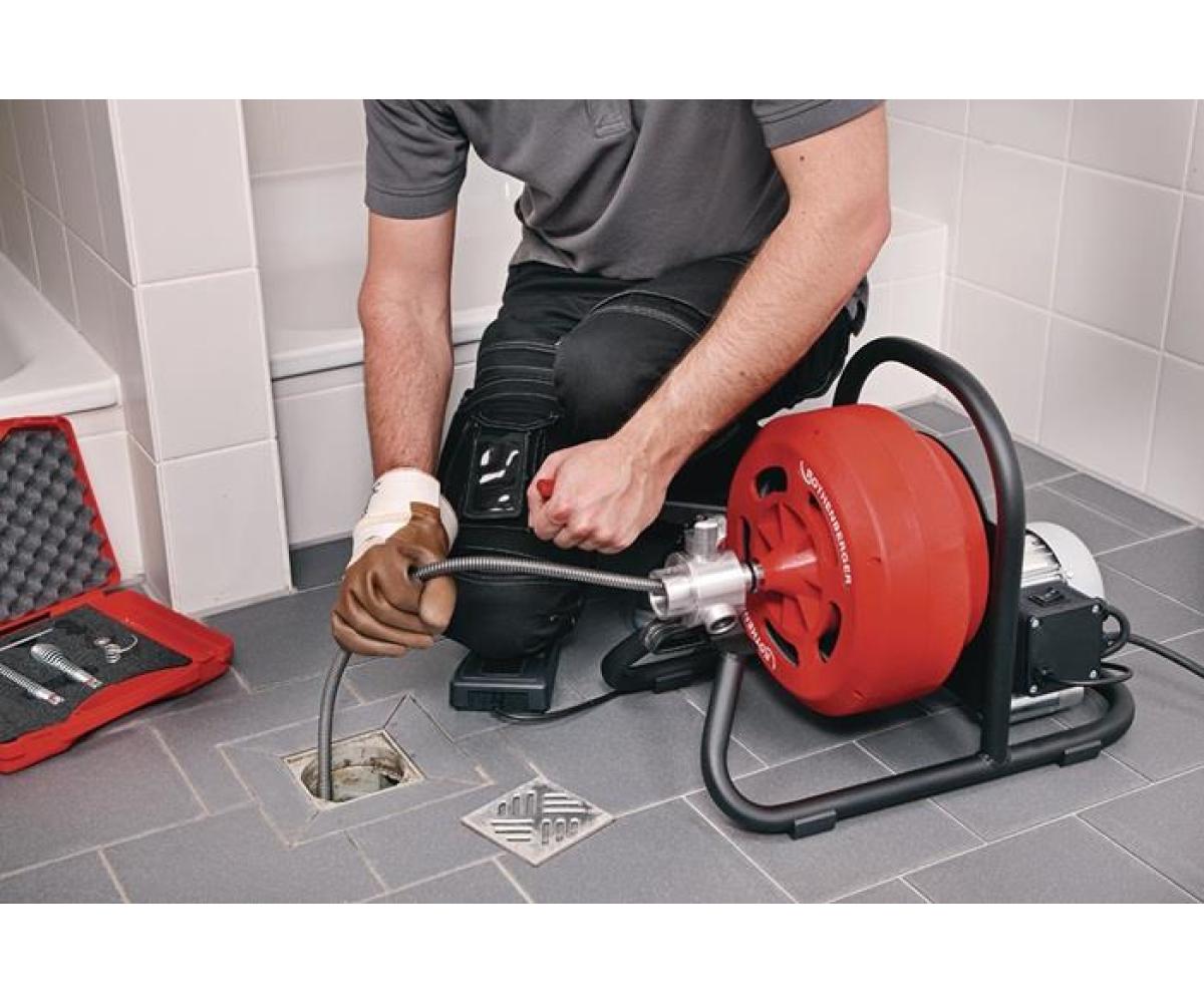 kompakte Trommelmaschine zur Beseitigung von Verstopfungen in Rohren von 40-100mm Durchmesser · durch die saubere und diskrete Arbeitweise ist sie bestens geeignet für SHK-Betriebe, Hausmeisterservice oder Rohrreiniger bzw. für Einsätze in Privathaushalten, Gastronomie und Hotels oder öffentlichen Gebäuden, da die verschmutzte Spirale beim Rücklauf in die Trommel hineinfährt.