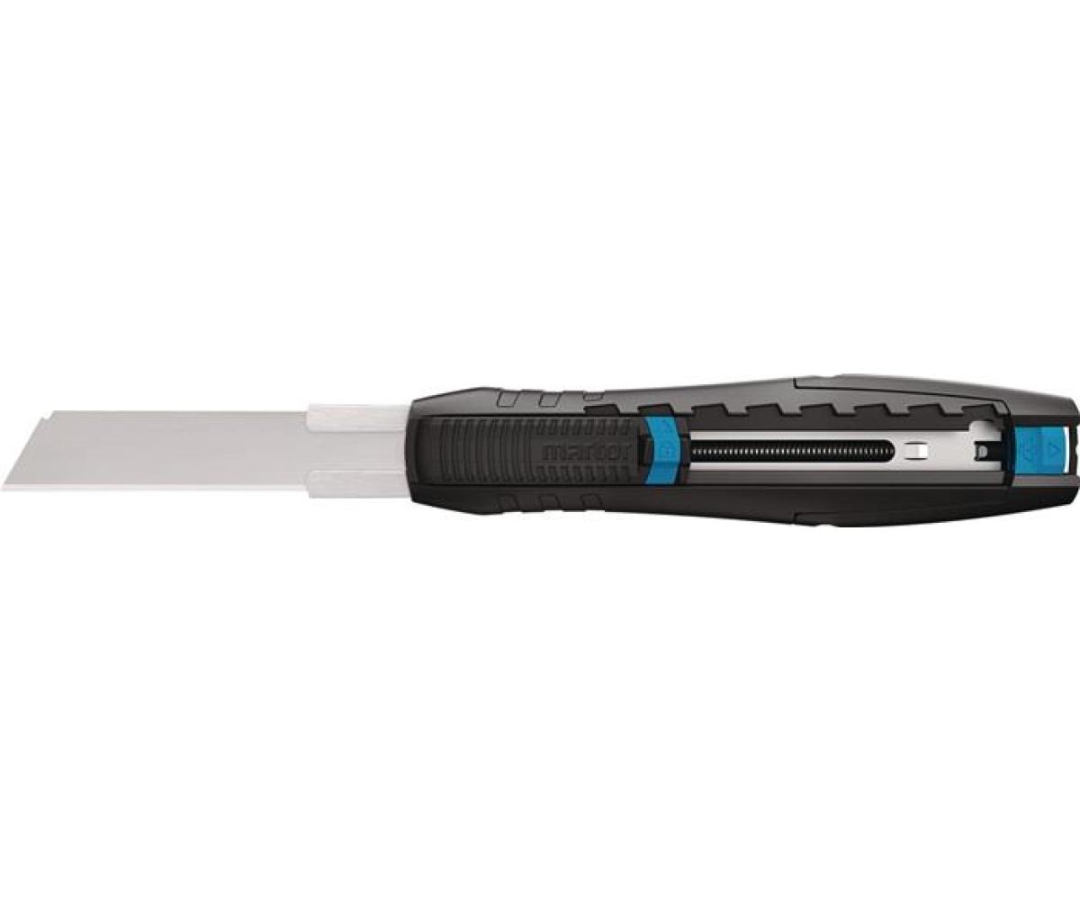 ein Sicherheitsmesser, das auch als Cuttermesser performt · mit einem automatischen Klingenrückzug, um Schnittverletzungen zu vermeiden · bestimmte Schneidanwendungen gehen aber mit fixierter Klinge besser von der Hand, darunter auch der Sägeschnitt · dafür können Sie optional die Klinge in sieben verschiedenen Stufen arretieren · glasfaserverstärkter Kunststoff · inkl. Transportsicherung · für Rechts- und Linkshänder