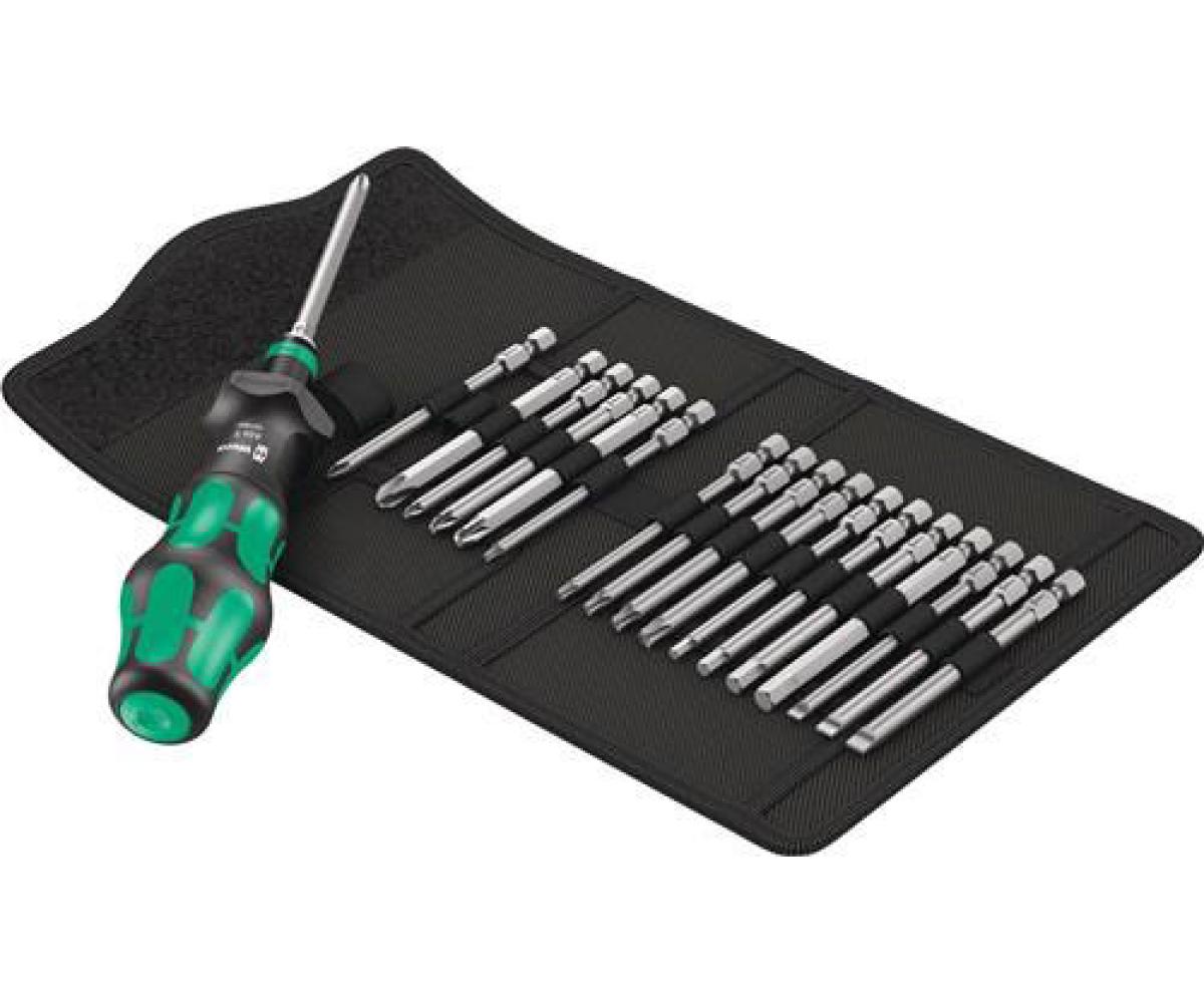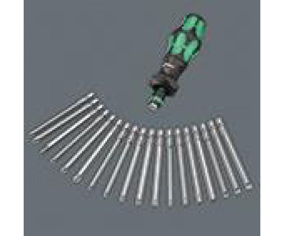 Weitere technische Eigenschaften · Antrieb: 1/4? · Verpackung: in Tasche mit textilem Außenmaterial · Antrieb mm: 6,3mm · Bitsortiment KK Turbo 1 · 19-tlg.Schlitz/PH/PZD/TOR · X®/6Kt.WERA ·