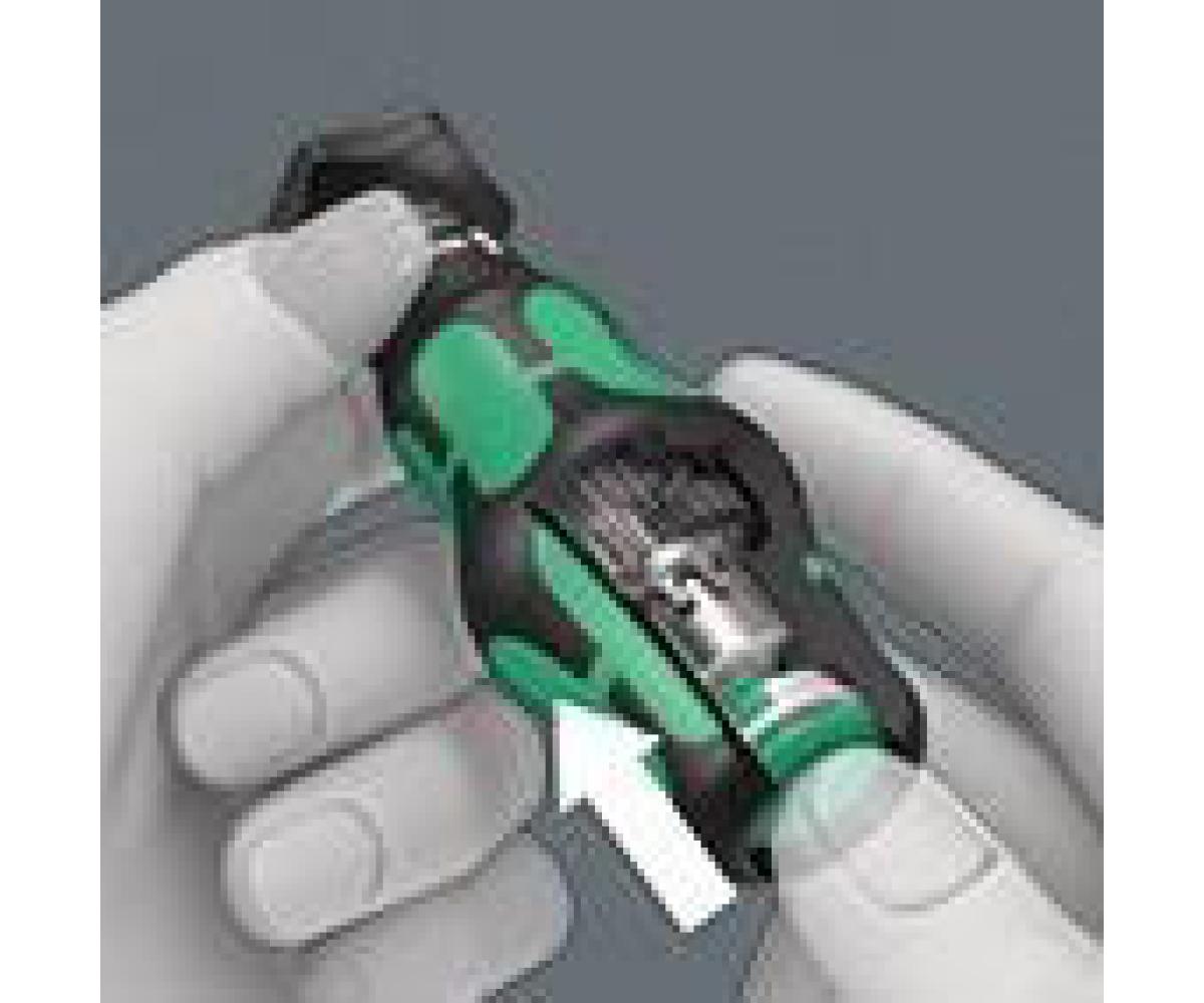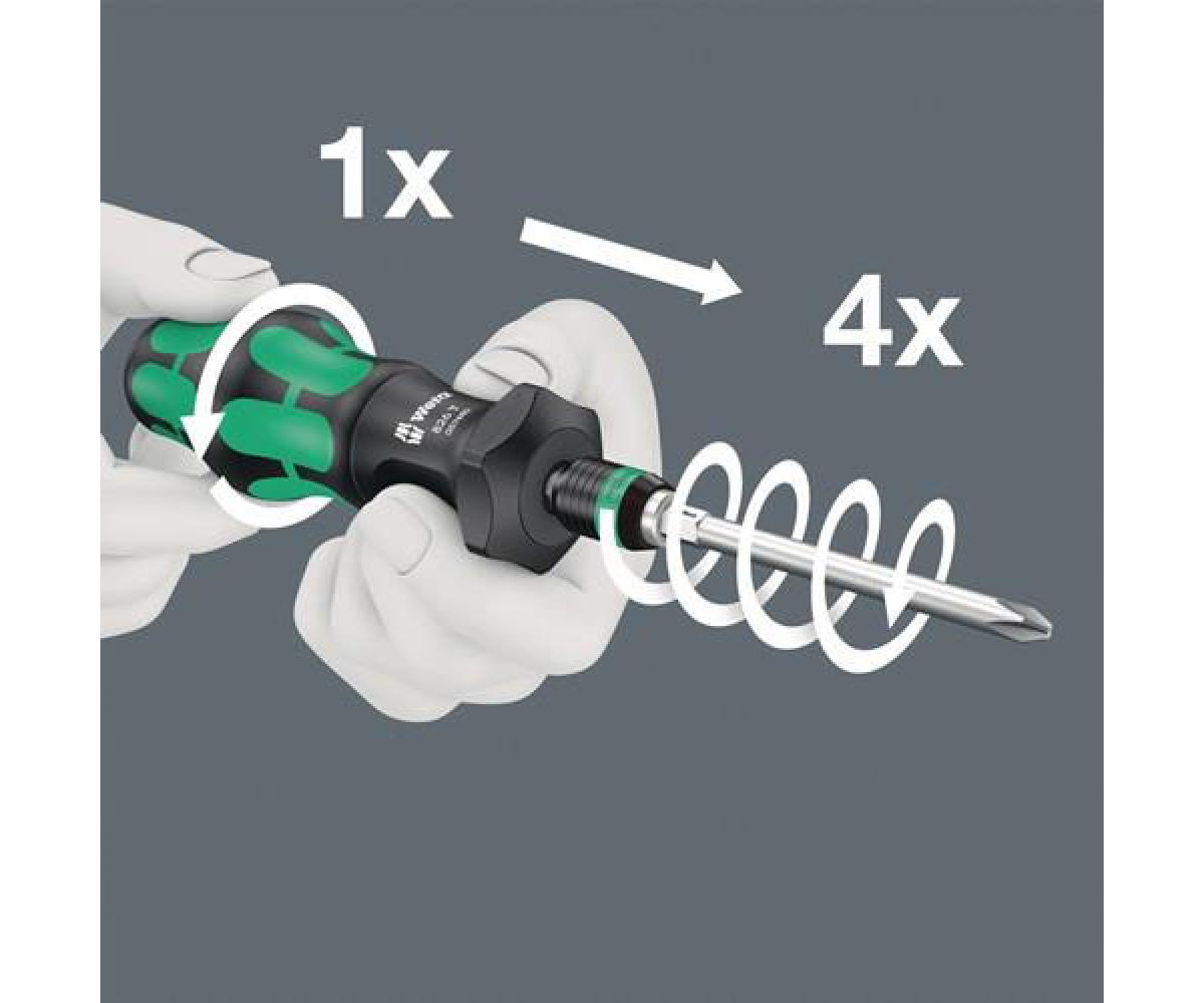 inklusive Handhalter mit Turbofunktion alle Bits 89 mm lang Inhalt: 1 Bit-Handhalter mit Schnellwechselfutter (Rapidaptor Technologie) - L. 146 mm je 1 Bit für Schlitzschrauben Gr. 4 / 5,5 / 6,5 mm je 1 Bit für Schrauben mit Kreuzschlitz (PH) (zähhart) Gr. 1 / 2 / 3 je 1 Bit für Schrauben mit Kreuzschlitz (PZD) (zähhart) Gr. 1 / 2 / 3 je 1 Bit für Schrauben mit Innen-TORX®-Profil Gr. T 10 / 15 / 20 / 25 / 30 je 1 Bit für Schrauben mit Innensechskant-Profil (Hex-Plus Technologie) Gr. 4 / 5,5 / 6,5 mm Besondere Produktvorteile Bithandhalter: zuschaltbare mechanische Turbofunktion zur Vervierfachung der Schraubgeschwindigkeit · robustes , wartungsfreies Getriebeaus Stahl