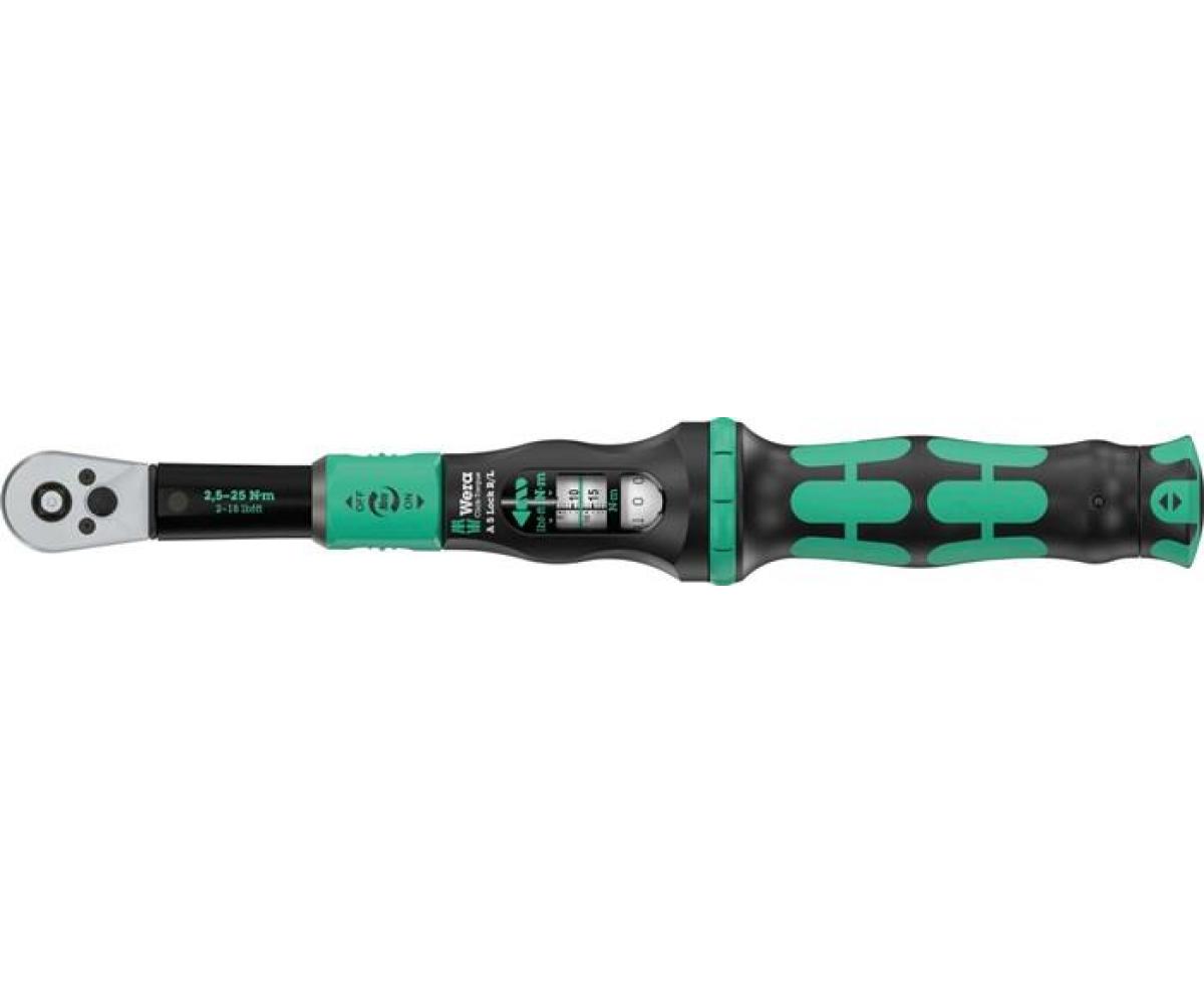 Weitere technische Eigenschaften · Ausführung: Innenvierkant · Durchmesser des Kopfes: 26mm · Durchmesser des Kopfes(inch): 1 1/64"Zoll · Durchmesser Uhr: 42mm · Durchmesser Uhr (inch): 1 41/64"Zoll · Einstellbar: ja · Höhe Ratschenkopf H2: 11,75mm · Höhe Ratschenkopf H2 (inch): 29/64"Zoll · Länge Drehmomentschlüssel (in Zoll): 11 49/64"Zoll · Länge Griff G2: 123mm · Länge Griff G2 (inch): 4 53/64"Zoll · Nebenskala Messbereich: 1-18lbf. ft. · Safe-Torque Rechts/Links Umschalten: ja · Torque: ja · Torque Lock Funktion: ja · Drehmomentschlüssel · Click-Torque Lock A 5 R/L · 1/4 Zoll 2,5-25 Nm WERA ·