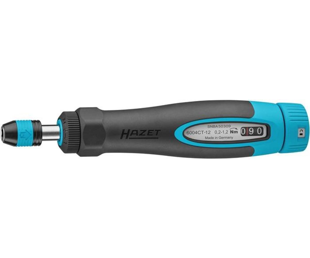Weitere technische Eigenschaften · prüfpflichtig: ja · Abtrieb Sechskant: 6,3mm · Abtrieb Sechskant (Zoll): 1/4Zoll · Anzugs-Drehmoment min Nm: 0,2Nm · Genauigkeit: 6% · Norm: Geprüft nach DIN EN ISO 6789-2:2017 · Zubehör: 2304N, 2238-1 · Drehmomentschraubendreher · 6004CT-12 0,2-1,2 Nm · HAZET ·