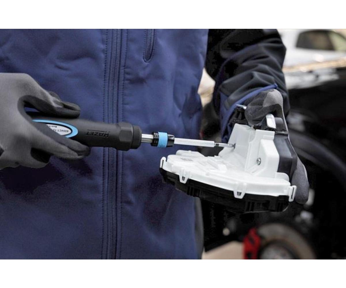„Knarrenfunktion“ mit Freilaufmechanismus · umschaltbar rechts – links – fest · ermöglicht schnelles Arbeiten durch reibungsloses Nachfassen beim Betätigen von Verschraubungen auch in beengten Bauräumen · hervorragende Ablesbarkeit der Drehmomenteinstellung durch große, eindeutige Ziffernanzeige · kurzer 36°-Auslöseweg mit ergonomischem Auslöseverhalten und deutlich hörbarem Signal · Bithalter mit Schnellverschluss – schneller Bitwechsel mit einer Hand · Auslösemechanismus aus hochlegiertem Werkzeugstahl mit hervorragender Verschleißfestigkeit · Überschreiten des eingestellten Drehmomentes wird durch Überrastkupplung („Slipper“) ausgeschlossen · leicht erkennbarer Verriegelungszustand mittels Schloss-Symbolen · mit Kalibrierschein und Seriennummer · Kalibrier- und Reparierfähigkeit im Remscheider HAZET Service-Center · ergonomischer HAZET 2-Komponenten-Griff · geprüft nach DIN EN ISO 6789-2:2017 · Abtrieb: 1/4 Zoll (6,3 mm) · Sechskant hohl · für Handbetätigung · Genauigkeit: 6%