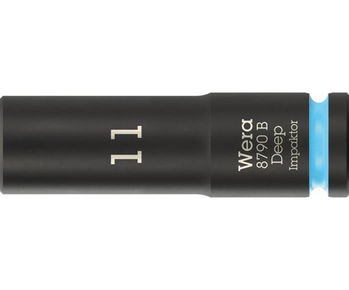 Weitere technische Eigenschaften · Außenmaß (d1): 17,8mm · Durchmesser hinten (d2): 20,0mm · Icon links: Außensechskant · Icon rechts: Aussenvierkant · Schlagschrauberfest: ja · Take it easy Nuss: ja · Steckschlüsseleinsatz · 8790 B Impaktor Deep 3/8 · Zoll 11mm L.63mm WERA ·
