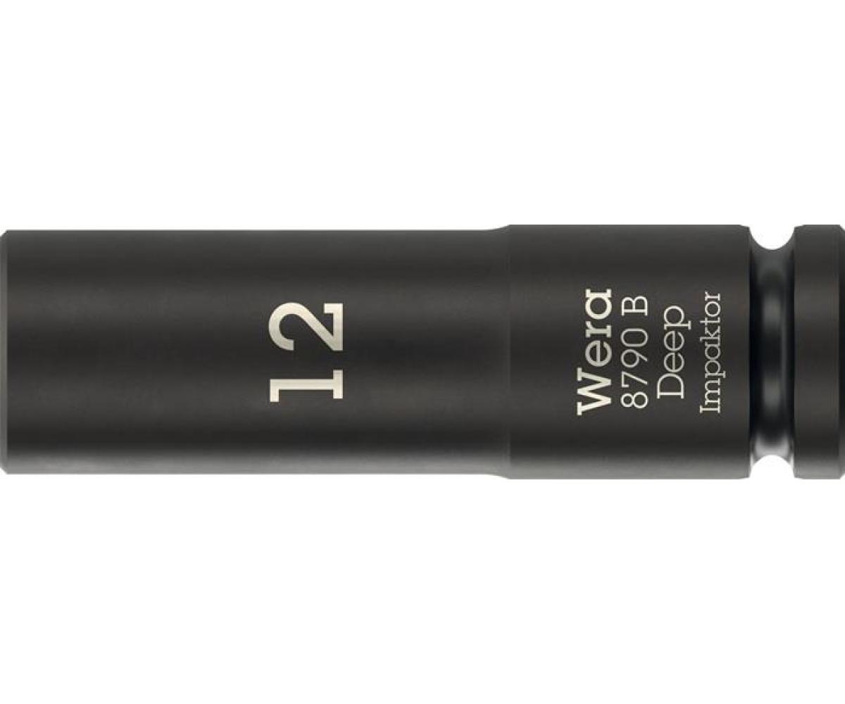 Weitere technische Eigenschaften · Außenmaß (d1): 18,2mm · Durchmesser hinten (d2): 20,0mm · Icon links: Außensechskant · Icon rechts: Aussenvierkant · Schlagschrauberfest: ja · Take it easy Nuss: ja · Steckschlüsseleinsatz · 8790 B Impaktor Deep 3/8 · Zoll 12mm L.63mm WERA ·