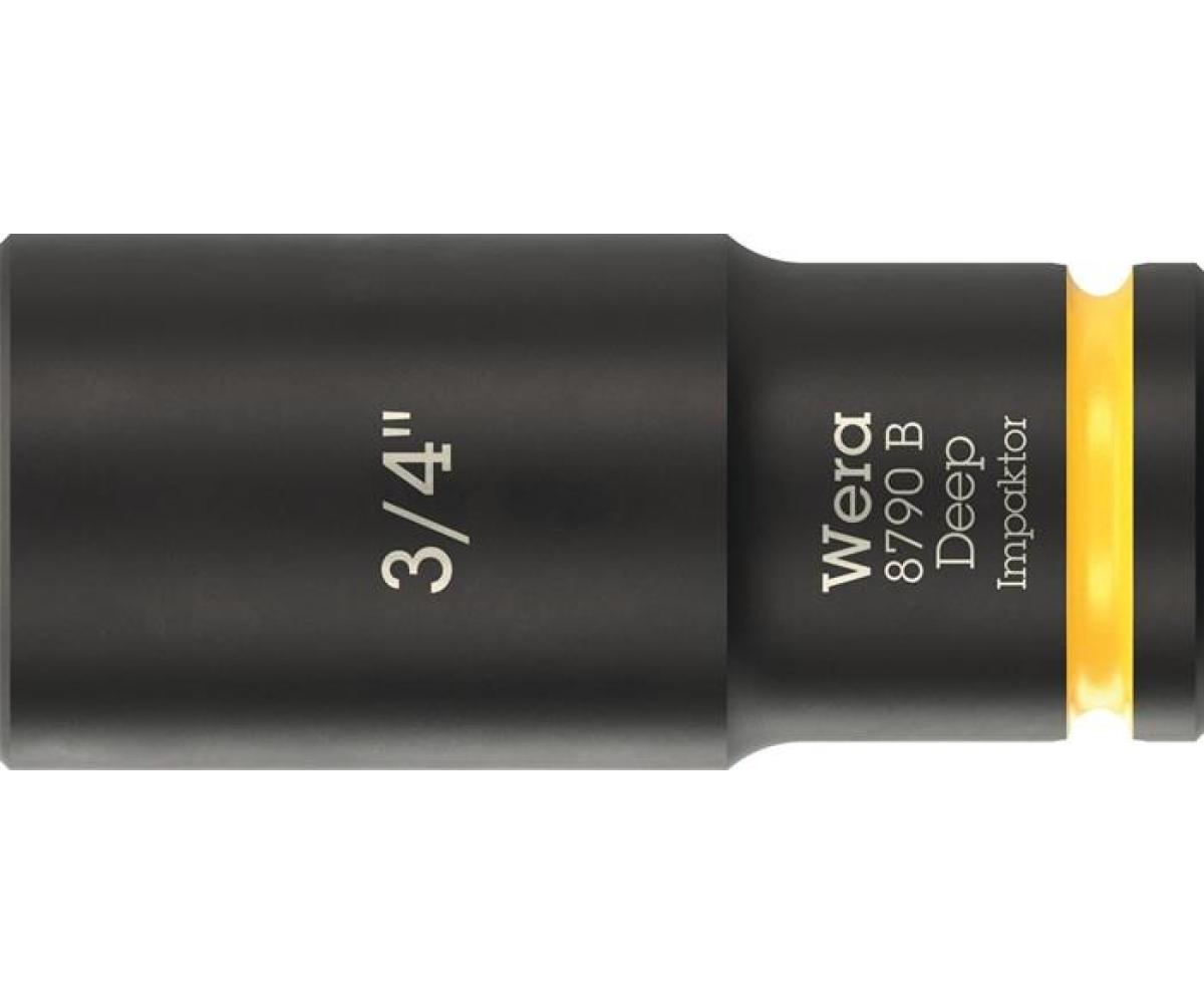 Weitere technische Eigenschaften · Außenmaß (d1): 28,0mm · Durchmesser hinten (d2): 25,0mm · Icon links: Außensechskant · Icon rechts: Aussenvierkant · Schlagschrauberfest: ja · Take it easy Nuss: ja · Steckschlüsseleinsatz · 8790 B Impaktor Deep 3/8 · Zoll 3/4 Zoll L.63mm WERA ·