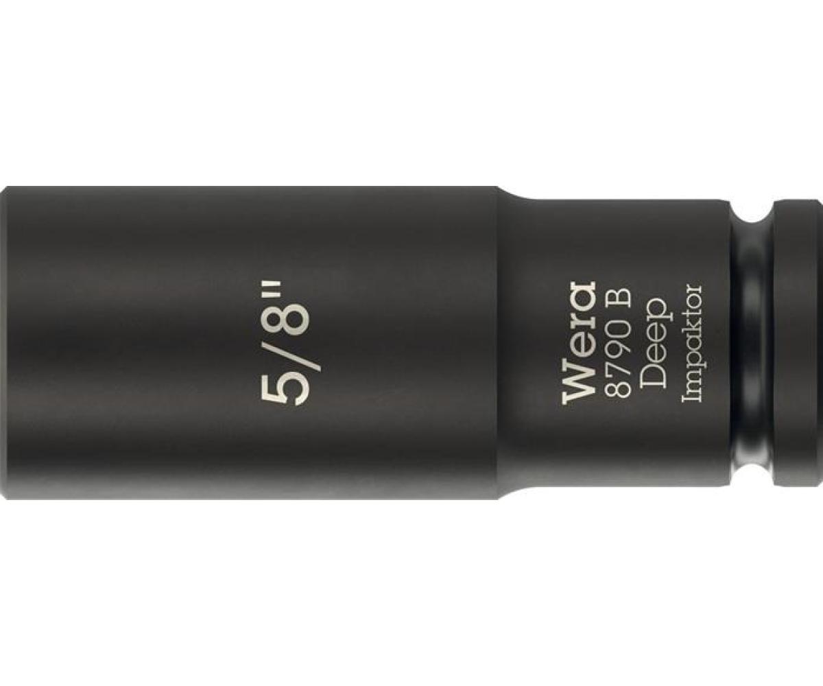 Weitere technische Eigenschaften · Außenmaß (d1): 24,0mm · Durchmesser hinten (d2): 22,0mm · Icon links: Außensechskant · Icon rechts: Aussenvierkant · Schlagschrauberfest: ja · Take it easy Nuss: ja · Steckschlüsseleinsatz · 8790 B Impaktor Deep 3/8 · Zoll 5/8 Zoll L.63mm WERA ·
