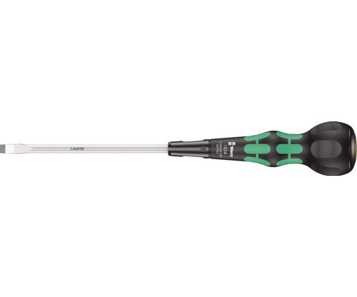 für Schlitzschrauben · Klinge: rund · nicromatt · Lasertip-Spitze · Kraftform Ball-Grip mit Abrollschutz, mehrkomponentig · mit Werkzeugfinder Take it easy: Farbkennzeichnung nach Profilen (Gelb = Schlitz) und Größenstempelung