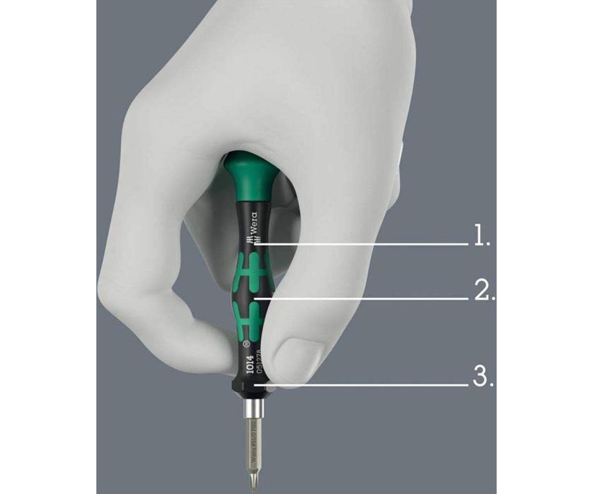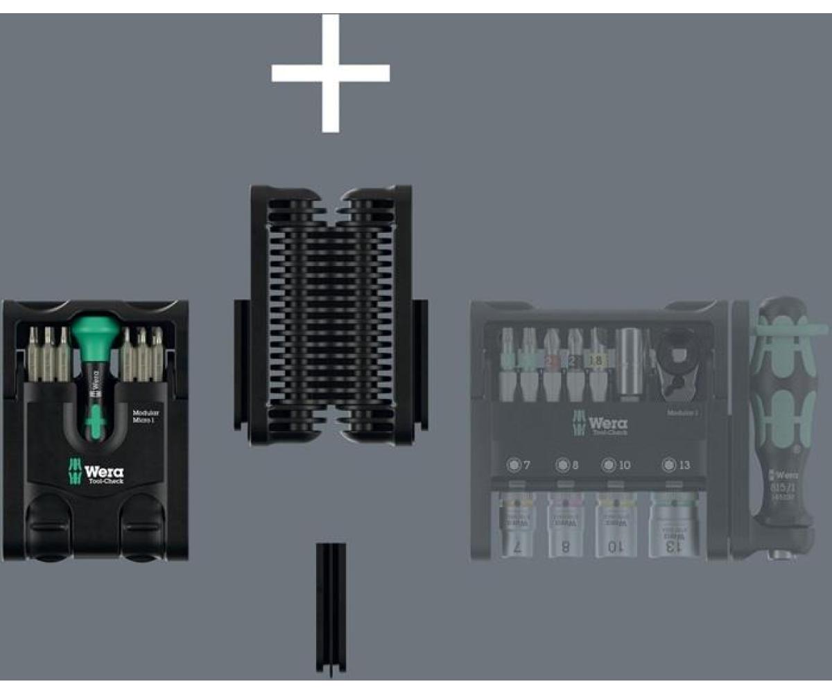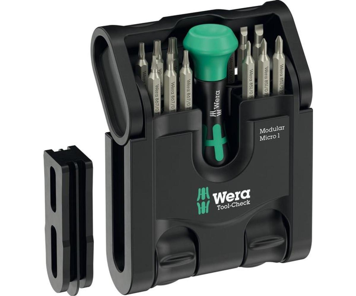 Lieferumfang: 1x 1014 Kraftform Micro Bits-Handhalter: 4 x 80 mm 4x 851/0 Micro Bits für Kreuzschlitzschrauben Phillips-Recess: PH 000x30 mm, PH 00x30 mm, PH 0x30 mm, PH 1x30 mm 2x 855/0 Micro Bits geeignet für Pozidriv-Schrauben: PZ 0x30 mm, PZ 1x30 mm 6x 867/0 Micro Bits für Innen TORX® Schrauben: TX 3x30 mm, TX 4x30 mm, TX 5x30 mm, TX 6x30 mm, TX 8x30 mm, TX 10x30 mm 5x 840/0 Micro Bits Hex-Plus für Innensechskantschrauben: 0,9x30 mm, 1,3x30 mm, 1,5x30 mm, 2x30 mm, 2,5x30 mm 3x 800/0 Micro Bits für Schlitzschrauben: 0,3x1,5x30 mm, 0,40x2,5x30 mm, 0,50x3x30 mm 1x 9549 Adapter für Tool-Check Modular: 10,5 x 47 x 16,5 mmTechnische Daten