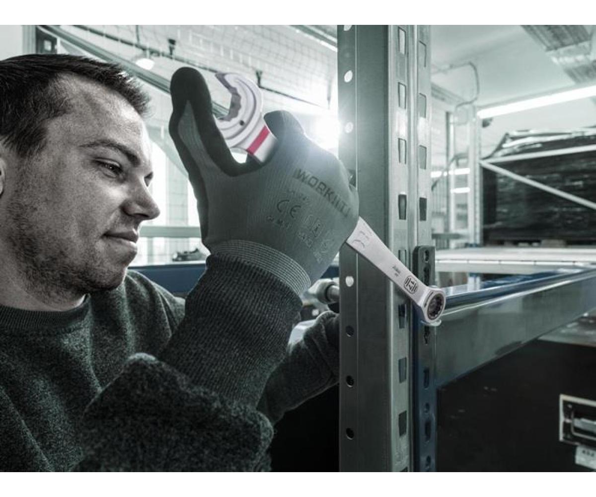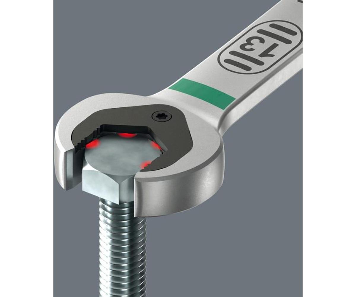 einzigartige Kombination aus Maul- und Ring-Ratschenmechanik in langer Ausführung · langer Hebel ermöglicht höhere Kraftübertragung · bessere Zugänglichkeit bei tiefliegenden Verschraubungen · Kein Abrutschen durch Endanschlag · mit praktischer Haltefunktion durch Metallplatte im Maul