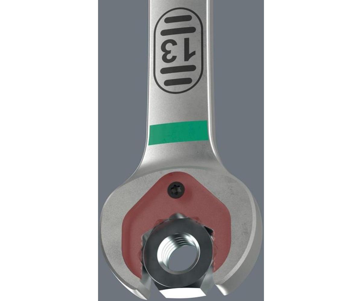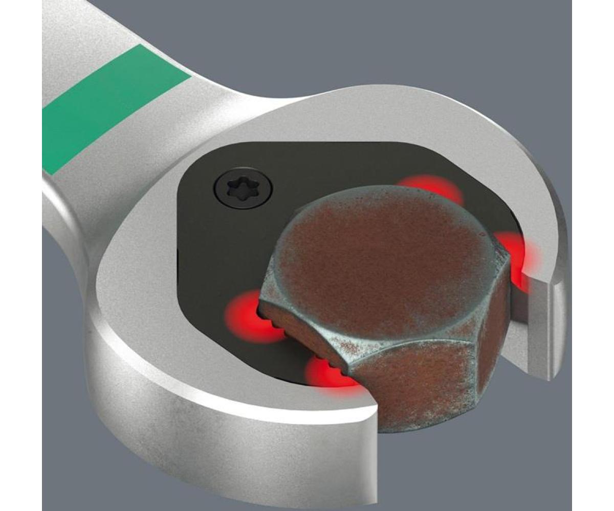 einzigartige Kombination aus Maul- und Ring-Ratschenmechanik in langer Ausführung · langer Hebel ermöglicht höhere Kraftübertragung · bessere Zugänglichkeit bei tiefliegenden Verschraubungen · Kein Abrutschen durch Endanschlag · mit praktischer Haltefunktion durch Metallplatte im Maul