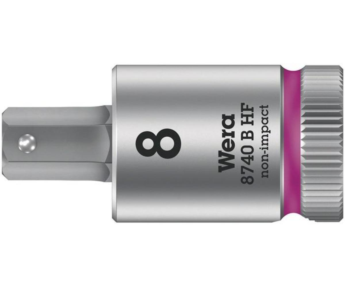 Weitere technische Eigenschaften · Material: Chrom-Vanadium-Stahl · Außenmaß (d1): 12,0mm · Durchmesser hinten (d2): 17,5mm · Farbe: pink · Hex-Plus: ja · Höhe Abtrieb: 12,5mm · Mit Haltefunktion für Innensechskant-Schrauben: ja · Take it easy Nuss: ja · Schraubendrehereinsatz · 8740 B HF 3/8 Zoll · Innen-6-kant SW 8,0mm ·