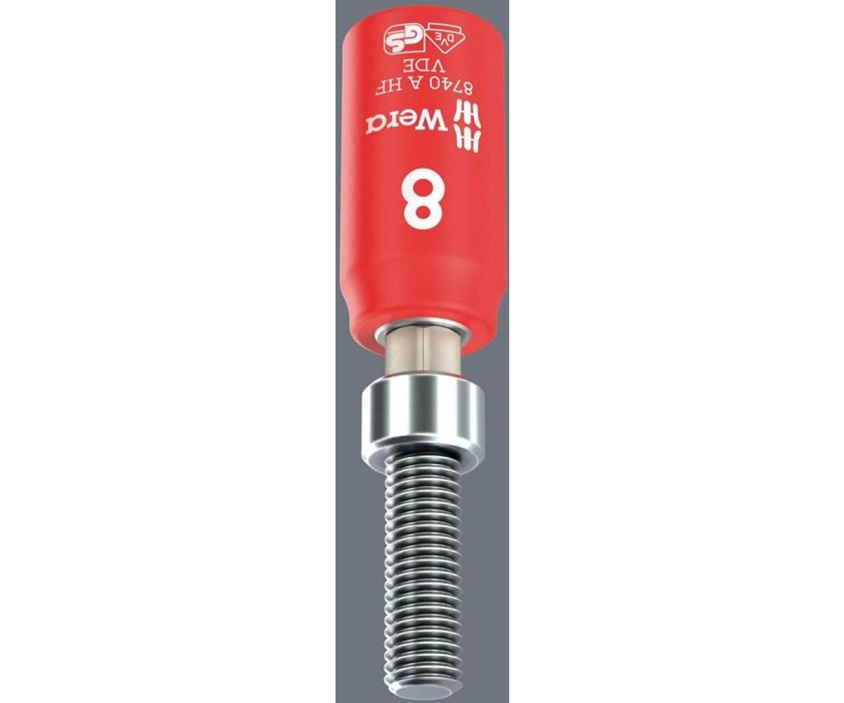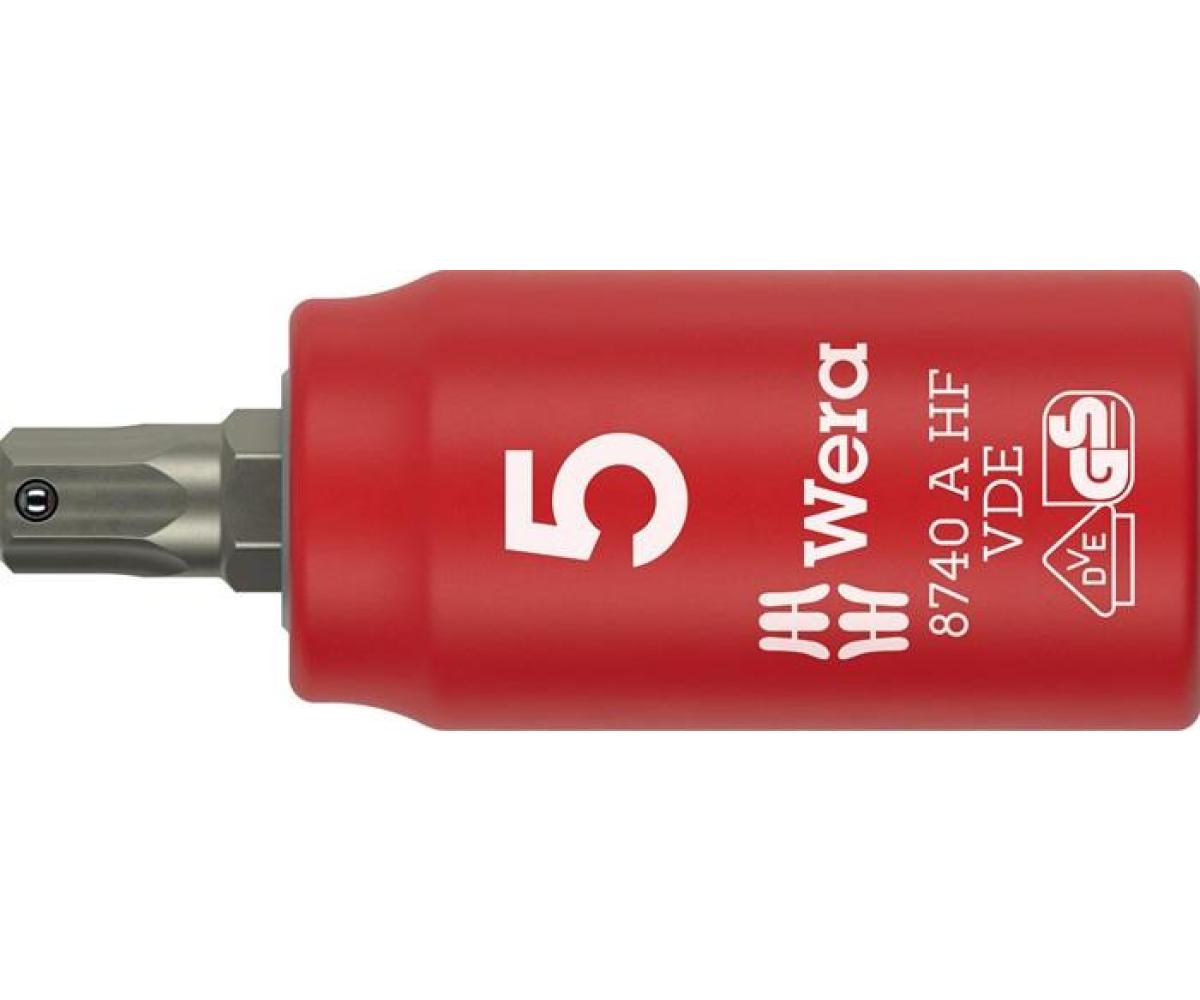 Weitere technische Eigenschaften · Durchmesser hinten (d2): 18,0mm · Hex-Plus: ja · Höhe Abtrieb: 9,0mm · Icon links: Innensechskant · Icon rechts: Aussenvierkant · Mit Haltefunktion für Innensechskant-Schrauben: ja · Steckschlüsseleinsatz · 8740 A VDE HF 1/4 Zoll SW · 5mm L.45mm WERA ·