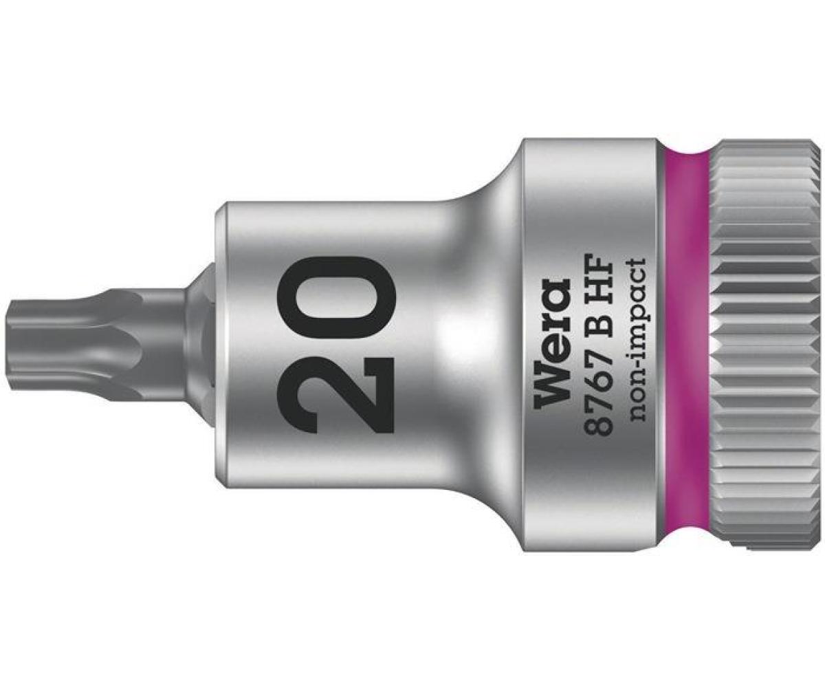 Weitere technische Eigenschaften · Material: Chrom-Vanadium-Stahl · Außenmaß (d1): 12,0mm · Durchmesser hinten (d2): 17,5mm · Farbe: pink · Höhe Abtrieb: 9,0mm · Mit Haltefunktion für Innen-TORX®-Schrauben: ja · Take it easy Nuss: ja · Schraubendrehereinsatz · 8767 B HF Torx 3/8 Zoll · TORX® TX 20 L.35mm WERA ·