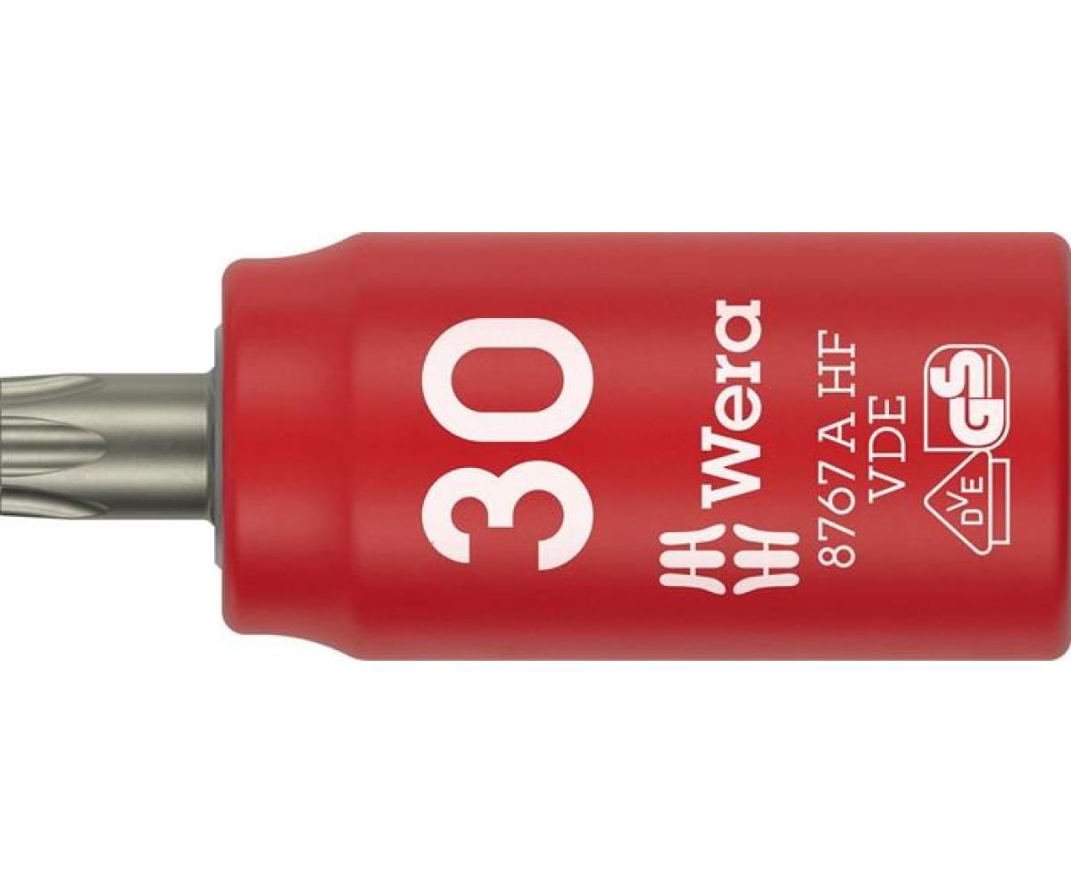 Weitere technische Eigenschaften · Durchmesser hinten (d2): 18,0mm · Höhe Abtrieb: 9,0mm · Icon links: TORX® · Icon rechts: Aussenvierkant · Mit Haltefunktion für Innen-TORX®-Schrauben: ja · Steckschlüsseleinsatz · 8767 A VDE HF 1/4 Zoll TX · 30 L.36mm WERA ·