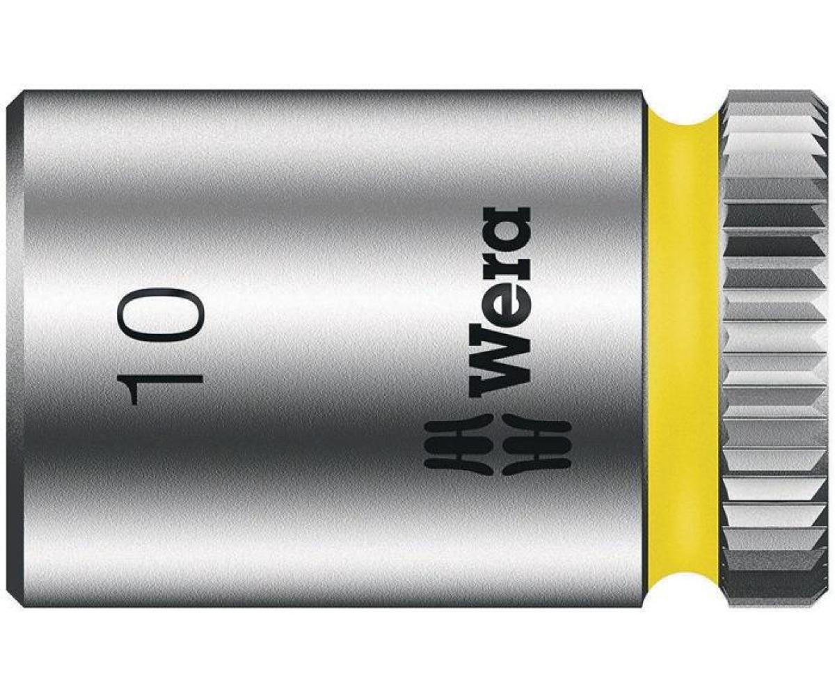 Hand- und Maschinensteckschlüssel-Einsatz (ISO 2725-Teil 3) von Wera ermöglicht einen Einsatz im Hand- und Maschinenbetrieb · mit "Take it easy" Werkzeugfinder mit Farbkennzeichnung nach Größen - zum einfachen und schnellen Finden des benötigten Werkzeugs · griffig zum leichten Greifen auch mit öligen Händen · mit Kugelfangrille · für Außensechskantschrauben- und muttern · aus mattverchromtem Chrom-Vanadium
