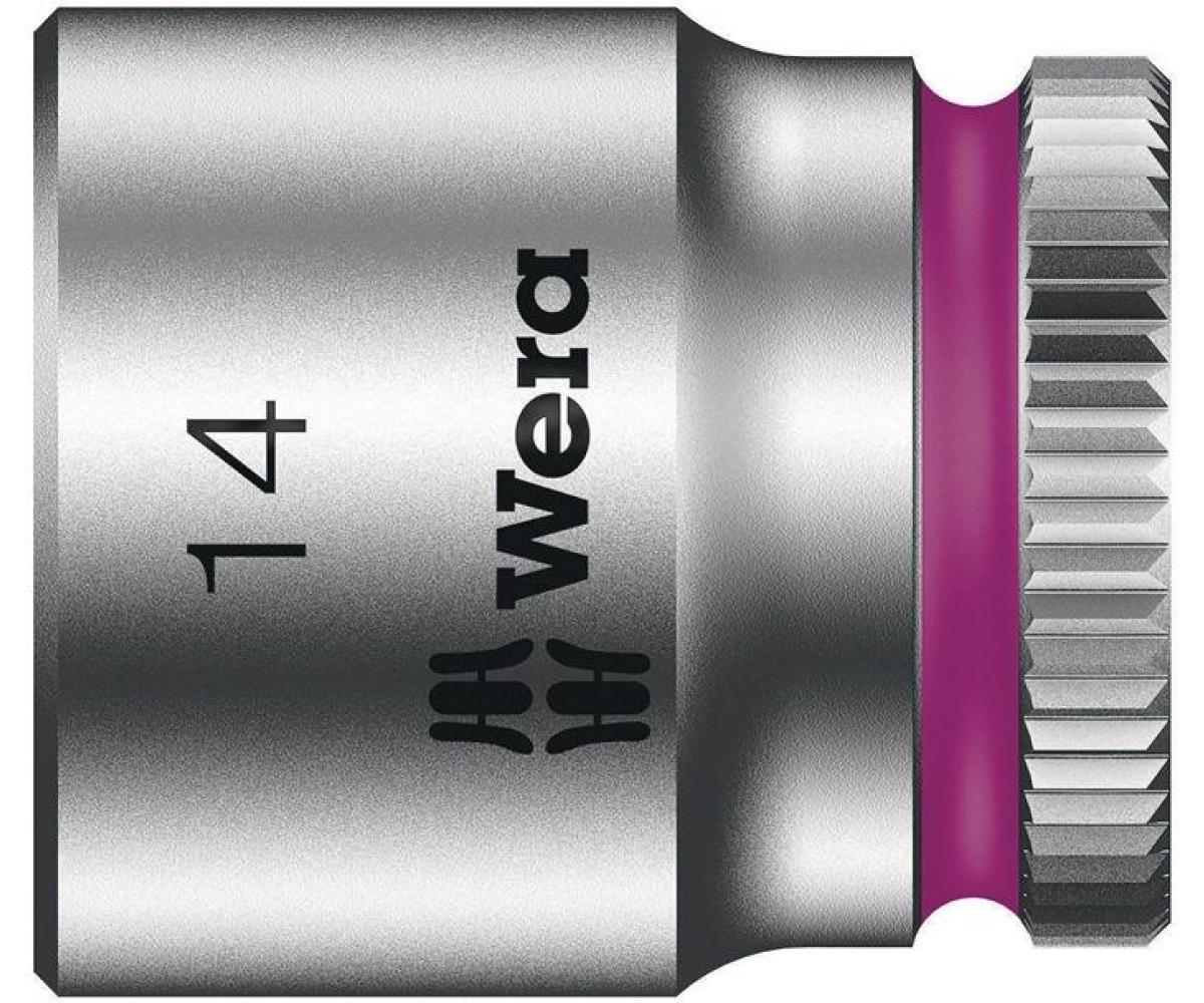Weitere technische Eigenschaften · Material: Chrom-Vanadium-Stahl · Außenmaß (d1): 20,0mm · Durchmesser hinten (d2): 18,0mm · Farbe: pink · Höhe Abtrieb: 13,0mm · Take it easy Nuss: ja · Steckschlüsseleinsatz · 8790 HMA 1/4 Zoll · a6-KT.SW 14mm L.23mm WERA ·