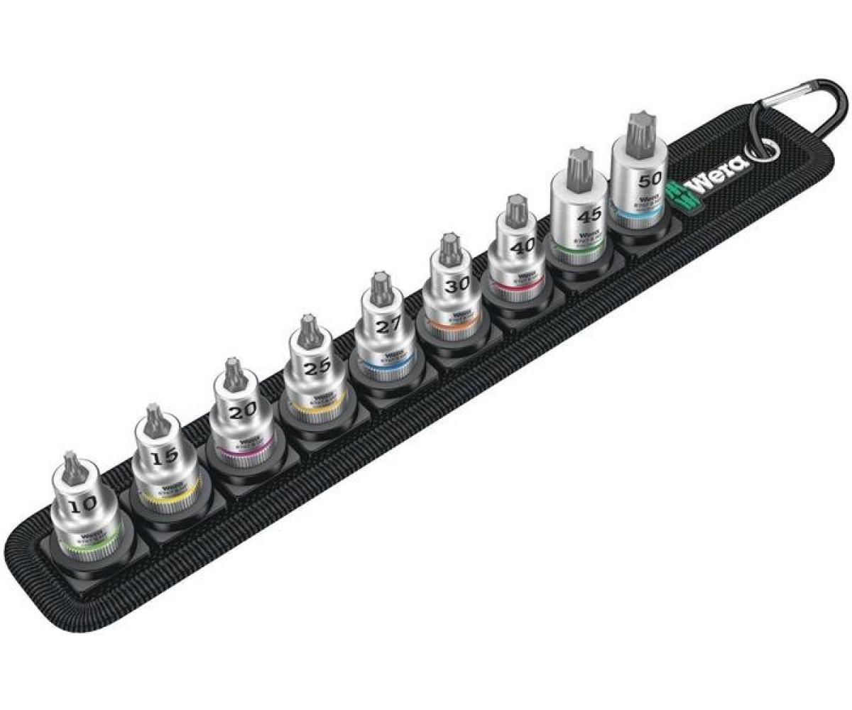 Weitere technische Eigenschaften · Ausführung: TORX® · Geeignet für Wera 2go: ja · Mit Haltefunktion für Innen-TORX®-Schrauben: ja · Take it easy Nuss: ja · Twist and Lock: ja · Schraubendrehereinsatzset · Belt B 3 Torx · 9-tlg.Antr.10mm (3/8) ·