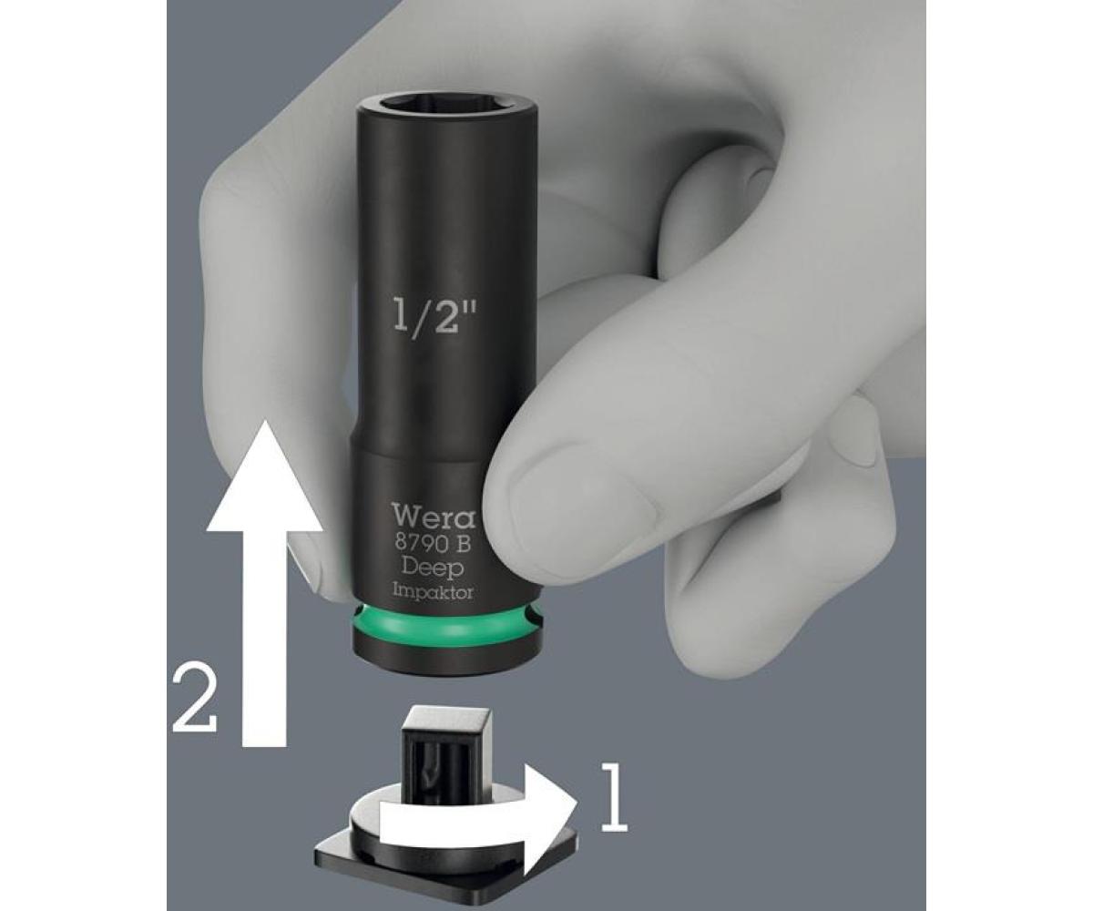 Weitere technische Eigenschaften · Verpackung: textile Box · Inhalt: 13-teilig · Geeignet für Wera 2go: ja · Icon links: Außensechskant · Icon rechts: Aussenvierkant · Schlagschrauberfest: ja · Take it easy Nuss: ja · Twist and Lock: ja · Steckschlüsselsatz 8790 B · Impaktor Deep Imperial · Set 1 13-tlg.3/8 Zoll ·