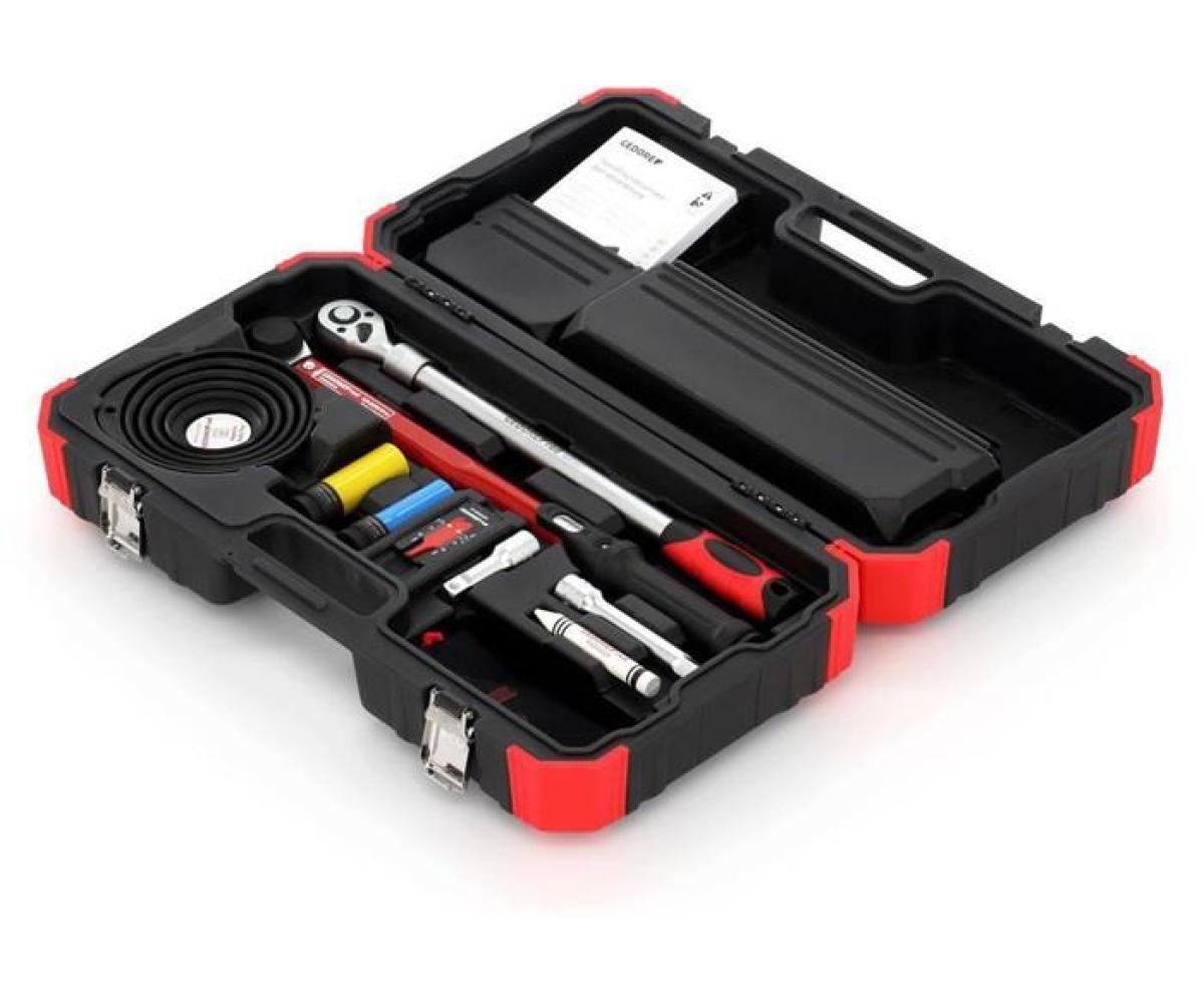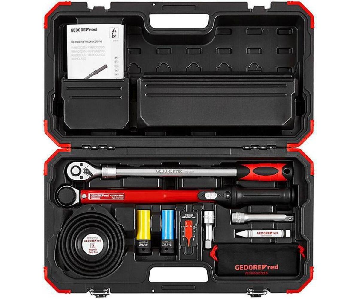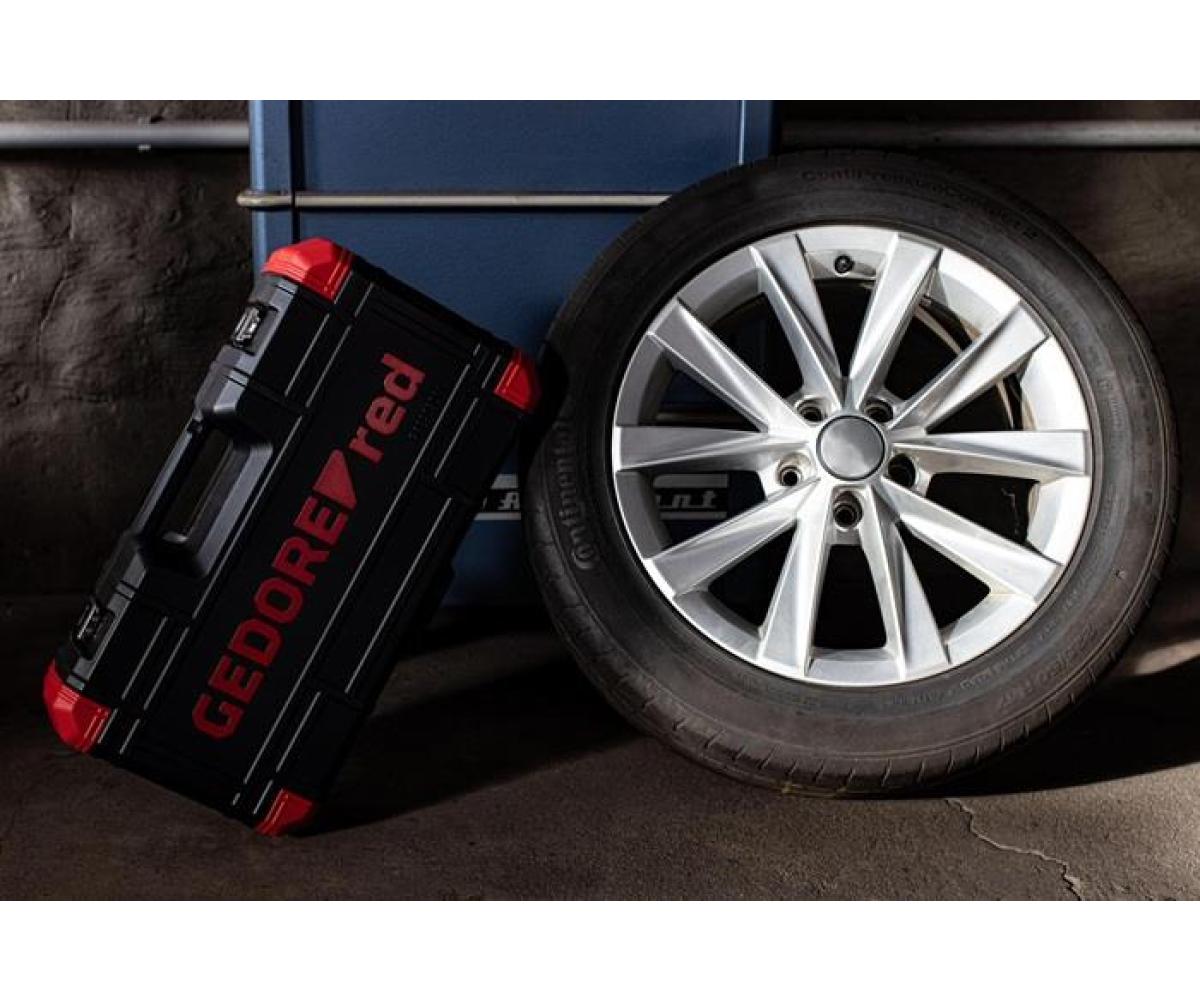 das Rad-Montage-Set gehört zur Grundausstattung einer jeden KFZ-Werkstatt · mit dem Set haben Sie stets Drehmomentschlüssel, Teleskopknarre und passende Einsätze dabei · aus hochwertigen Materialien hergestellt, was es besonders langlebig und robust gegen die alltäglichen Beanspruchungen macht · der Satz wird in einem robusten Kunststoffkoffer mit Metallscharnieren geliefert, so können Sie die Werkzeuge übersichtlich aufbewahren und sicher transportieren · das GEDORE red Sortiment umfasst neben Hammer und Zange auch weiteres Werkzeug für den Heimwerker · mit einem optimalen Preis-Leistungs-Verhältnis erfüllt es dabei alle Industrie-Normen