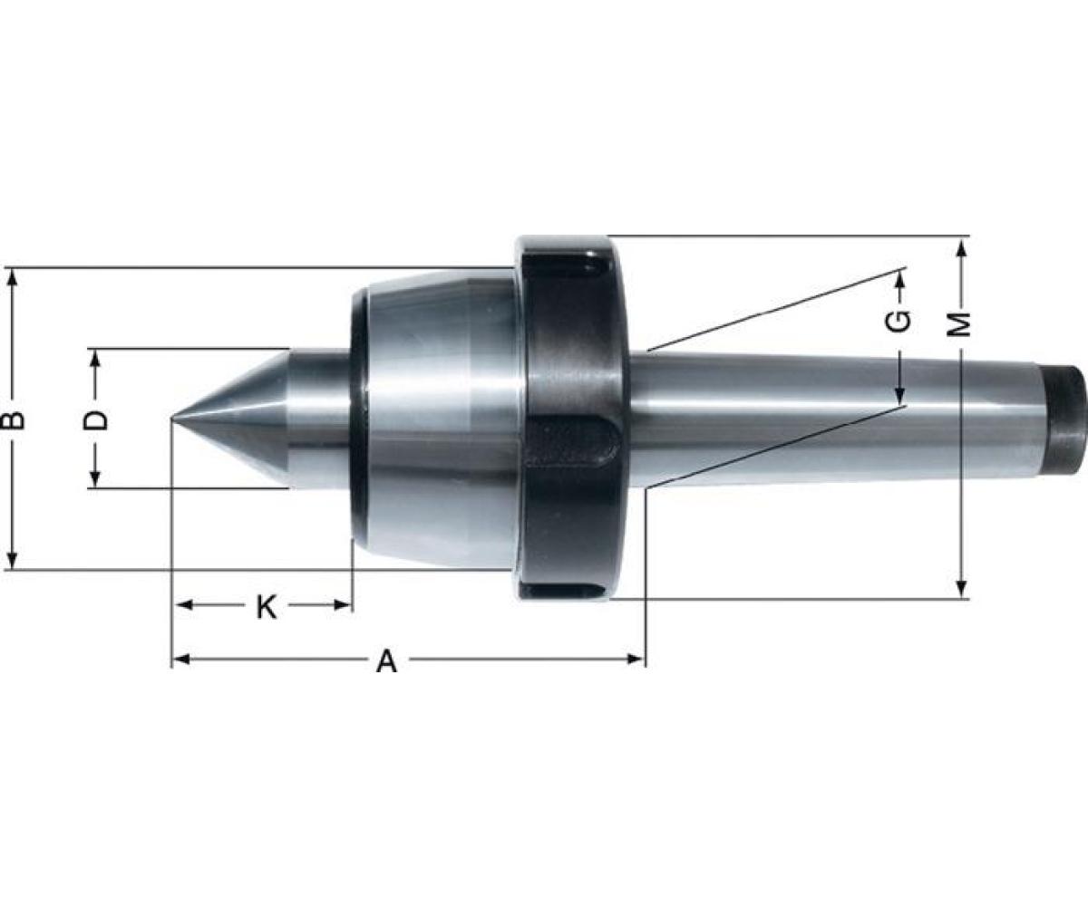 Weitere technische Eigenschaften · A: 114,5mm · D: 32mm · G: 31,267mm · Bearbeitungsart: mitlaufend · Rundlaufabweichung max.: 0,005mm · B: 68,5mm · K: 53mm · Drehzahl max.: 3800min-¹ · Zentrierspitze Pro MK4 · mitlfd.m.verl.Laufspitze · RÖHM ·