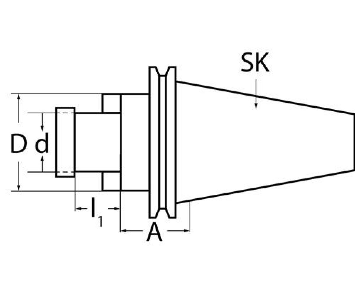 Weitere technische Eigenschaften · Norm: DIN 69871 · A: 100mm · D: 48mm · Spann-Ø d: 22mm · L1: 19mm · Quernutaufsteckfräsdorn · DIN 69871AD/B · Spann-D.22mm SK40 ·
