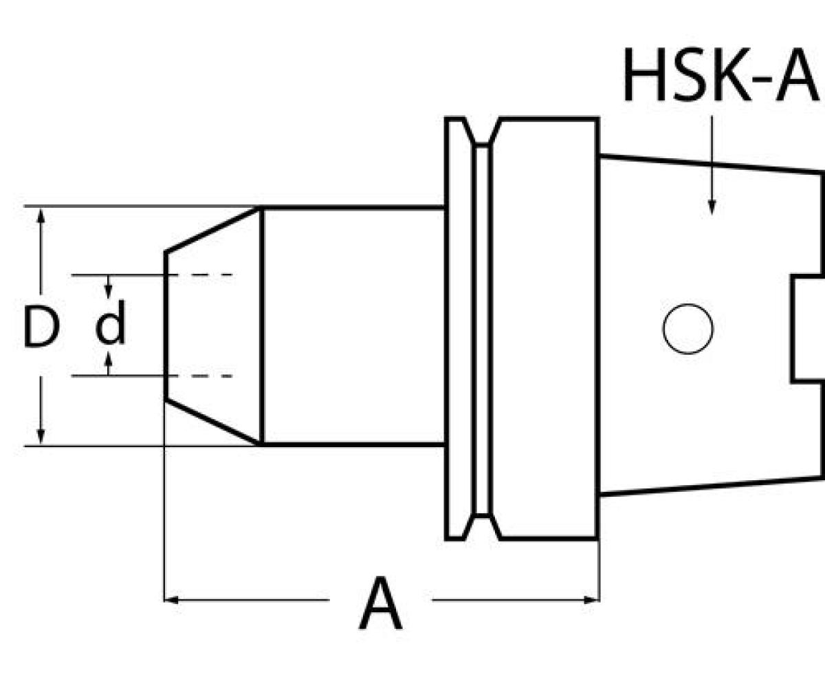 Weitere technische Eigenschaften · Kühlung: mit Innenkühlung · Norm: DIN 69893 · A: 80mm · D: 52mm · Spann-Ø d: 20mm · Flächenspannfutter DIN · 69893A Weldon · Spann-D.20mm HSK-A63 ·