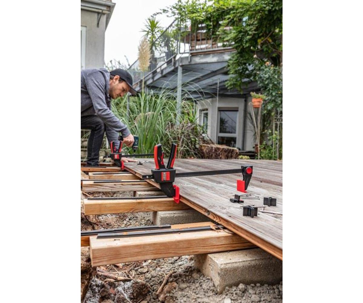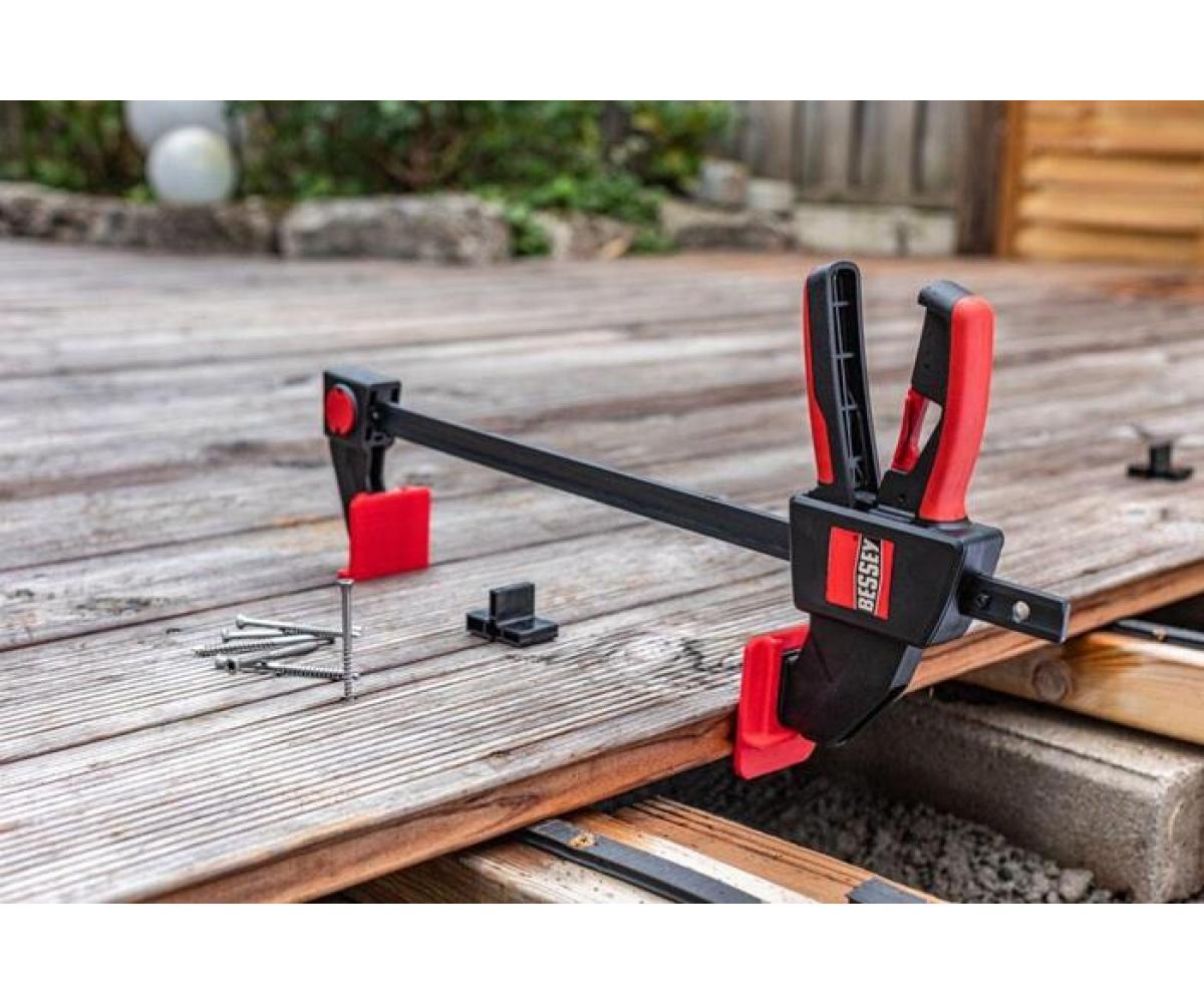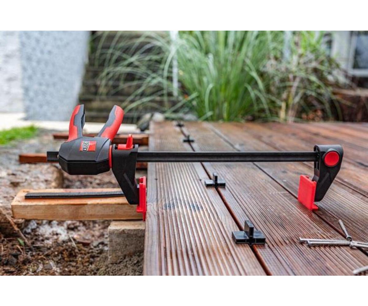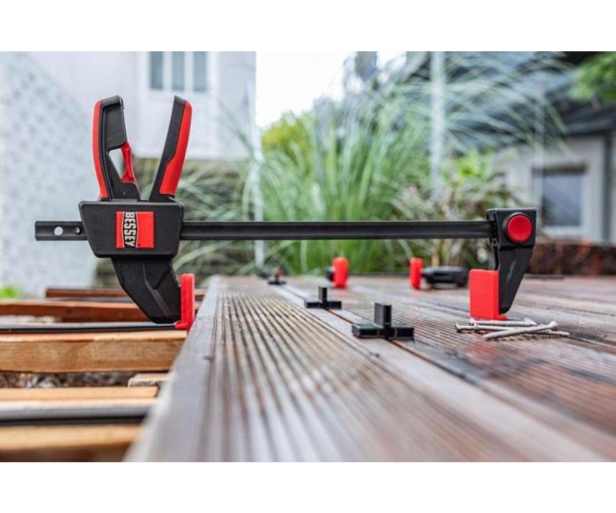 Zubehör für BESSEY Einhandzwingen EZ360 und EZL (ab 300 mm Spannweite) · zum schnellen und exakten Ausrichten von Terrassendielen mit bis zu 20 cm Breite · für 6, 7, 8 und 10 mm (1/4", 9/32", 5/16" und 3/8") Abstände zwischen den Terrassendielen · werkzeuglose Montage · SB-verpackt