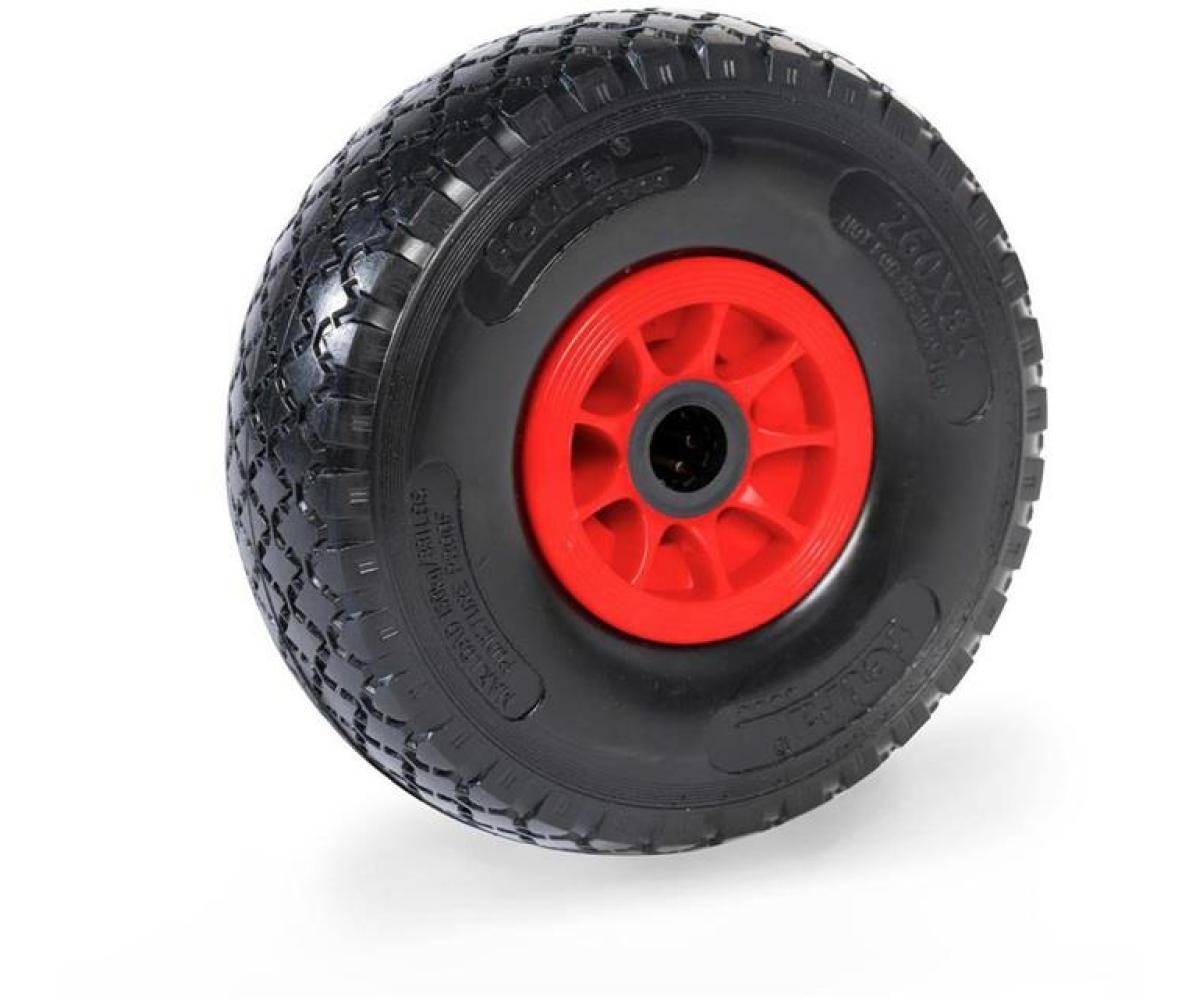 PUR-Vollmaterial-Reifen auf Kunststoff-Felge · absolut pannensicher · Fahrkomfort ähnlich wie bei Lufträdern