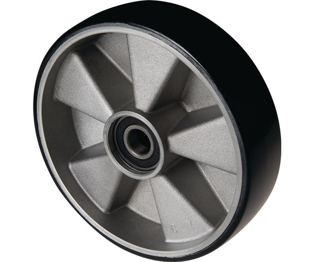 Polyurethanbandage auf Alu-Guss-Felge · mit Kugellager · für hohe Belastbarkeit · robust und abriebfest · geräuscharmer Lauf