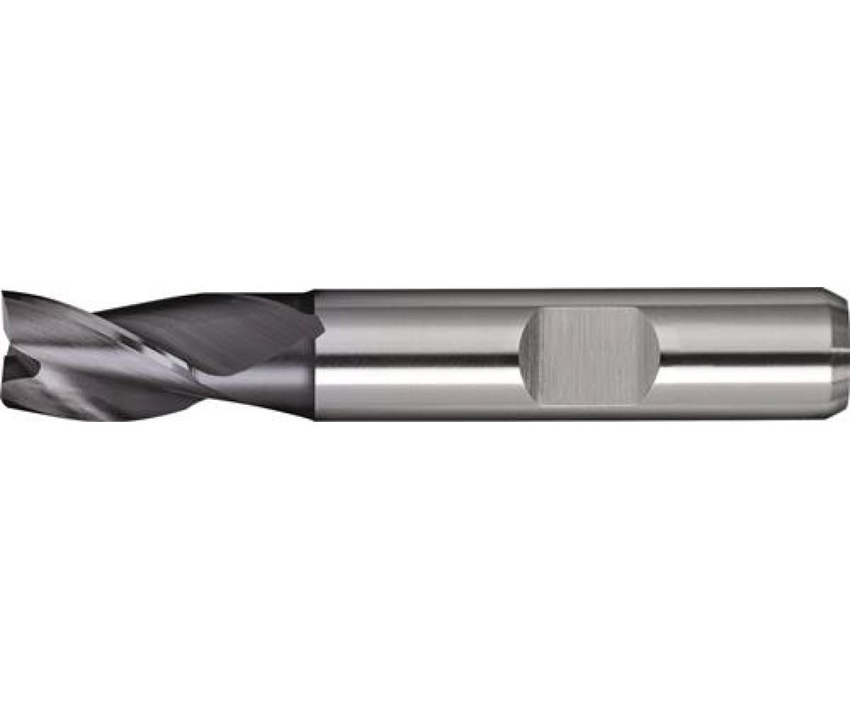 HSS-Co8 · DIN 327 · Typ N · Dreischneider · kurz · Zentrumschnitt · Zylinderschaft mit Mitnahmefläche · rechtsschneidend · zum Fräsen von Werkstoffen mit geringer und mittlerer Festigkeit bis ca. 800 N/mm² mit unbeschichtetem Werkzeug und 1000 N/mm² mit beschichtetem Werkzeug · zum Fräsen von Passfedernuten mit größerer Tiefe zum Stirn- und Umfangsfräsen