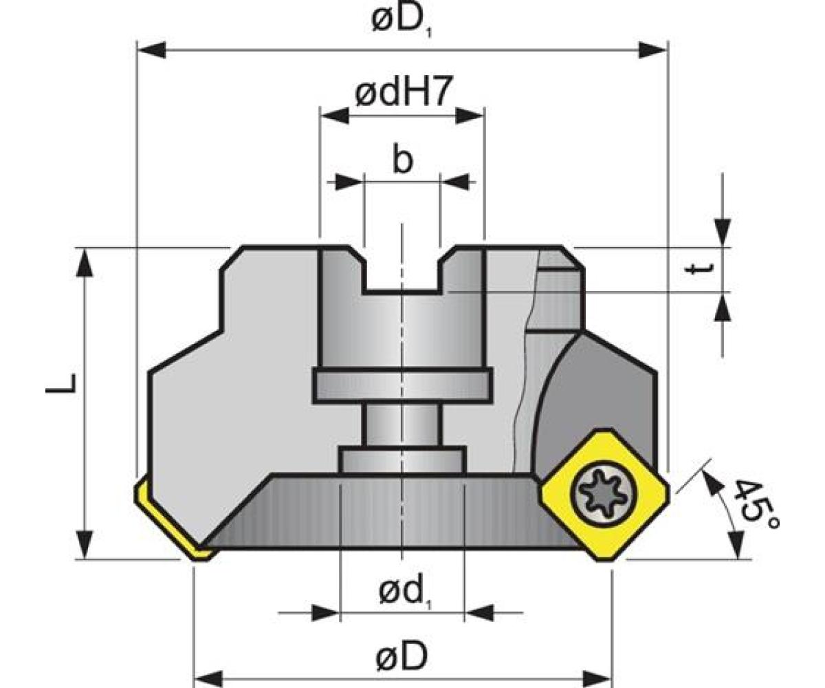 Lieferung inkl. Anzugschraube, Klemmschraube, ohne Schraubendreher (Größe T20) Lieferung ohne WendeschneidplatteTechnische Daten